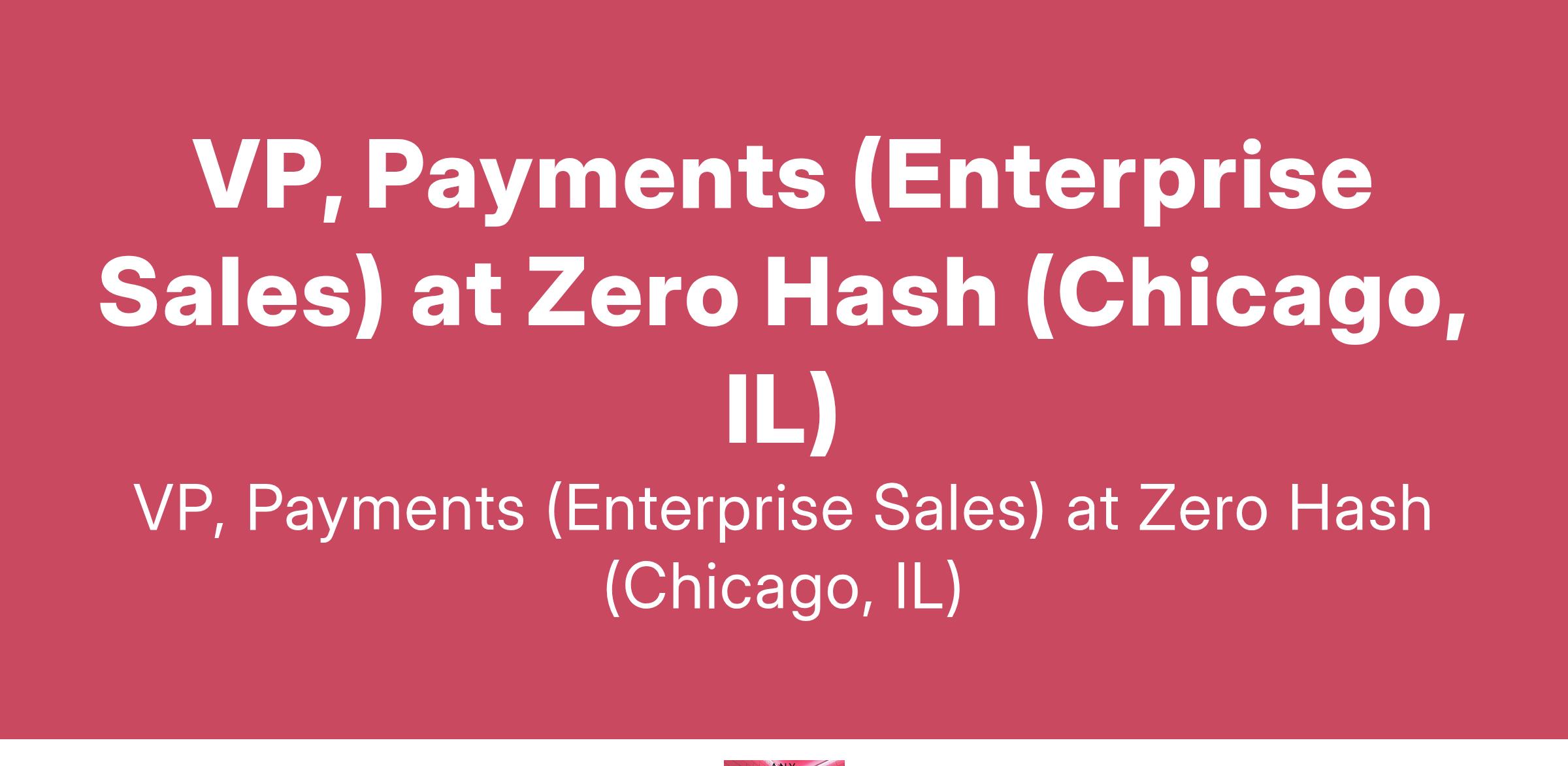 VP, Payments (Enterprise Sales) at Zero Hash (Chicago, IL)