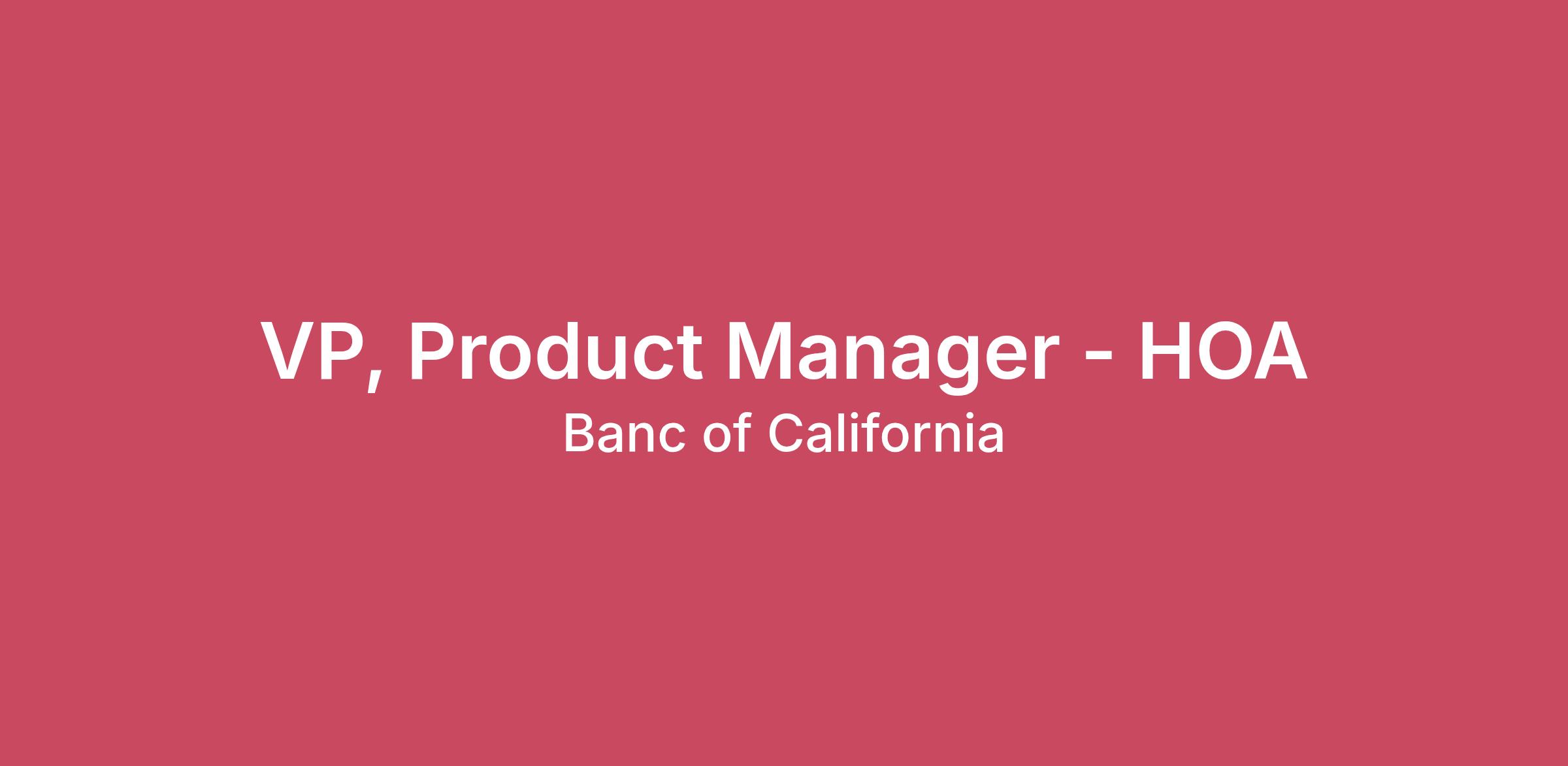 BANC OF CALIFORNIA AND YOUR CAREER Banc of California, Inc. (NYSE: BANC) is a bank holding company with over $34 billion in assets and the parent company of Banc of California. Banc of California is one of the nation’s premier relationship-based business banks, providing banking and treasury management services to small, middle market, and venture backed businesses. As the largest independent bank headquartered in California, the bank offers a broad range of loan and deposit products and services through a network of full-service branches and regional offices, as well as through digital and nationwide capabilities. The bank also provides full-service payment processing solutions to its clients and serves the Community Association Management industry nationwide through its technology forward platform, SmartStreet™. Banc of California is committed to supporting its local communities through the Banc of California Charitable Foundation and by partnering with organizations that promote financial literacy, job training, small business support, affordable housing, and more. THE OPPORTUNITY Responsible for assisting the HOA group in achievement of goals and overall business success. Provide leadership, direction and motivation to ensure stakeholder teams can deliver best client experiences to the business. Serve as an expert on HOA customer journey, personas, client engagement, and industry trends, specifically for digital experience. Performs all duties in accordance with the Company’s policies and procedures, all U.S. state and federal laws and regulations, wherein the Company operates. HOW YOU’LL MAKE A DIFFERENCE Follow all established policies and procedures. Build and maintain client journey maps across all HOA groups. Be an expert on client experience workflows from UI to vendors to systems. Assist in strategy and roadmap for the HOA segment. Liaise between client facing teams to gather requirements and feedback. Track HOA banking solution performance through client feedback, adoption metrics and meeting key milestones as determined by the team. Lead internal training development, support, and communication flow, serving as a liaison and coordination for cross-functional teams to ensure launch readiness. Collaborate with new product/innovation team in evaluating and developing new features, by using customer journey mapping, requirements framework, design thinking and agile development methodology. Develop a deep understanding of the market problems of various industry segments and user personas and effectively position and communicate how and why product features and functionality address and overcome those market problems for our clients. Anticipate bottlenecks, balance business objectives and needs versus technical and operational constraints and adjudicate between internal stakeholder groups to resolve blocking issues. Develop, manage and execute the Go-To-Market launch plan alongside Go-To-Market lead. Create and maintain marketing materials such as demos, talking points, presentations, user guides and how to videos. Conduct role-specific training for existing and new employees to support the business strategy. Follow all established policies and procedures. Perform other duties and projects as assigned. WHAT YOU’LL BRING High School diploma or equivalent required Minimum six years of recent commercial bank and HOA banking experience required Extensive experience working in a team-oriented, collaborative environment. In-depth knowledge of Bank products and ability to manage Product roadmap Proven leadership skills Analytical aptitude and problem-solving abilities Proficiency in Microsoft Office Suite, Salesforce, FIS Understanding of the organization’s goals and objectives Ability to present ideas in user-friendly, non-technical terms Able to prioritize and execute tasks in an agile and multi-tasking environment Ability to work in a team-oriented, collaborative environment Ability to communicate appropriately and effectively with all members of the organization. Highly self-motivated and directed Ability to effectively prioritize and execute tasks in a high-pressure environment High School diploma or equivalent required HOW WE’LL SUPPORT YOU Financial Security: You will be eligible to participate in the company’s 401k plan which includes a company match and immediate vesting. Health & Well-Being: We offer comprehensive insurance options including medical, dental, vision, AD&D, supplemental life, long-term disability, pre-tax Health Savings Account with employer contributions, and pre-tax Flexible Spending Account (FSA). Building & Supporting Your Family: Banc of California partners with providers that offer adoption, surrogacy, and fertility assistance as well as paid parental leave and family support solutions including care options for your family. Paid Time Away: Eligible team members receive paid vacation days, holidays, and volunteer time off. Career Growth Opportunities: To support career growth of our team members, we offer tuition reimbursement, an annual mentorship program, leadership development resources, access to LinkedIn Learning, and more. SALARY RANGE The base salary ultimately offered is determined through a review of education, industry experience, training, knowledge, skills, abilities of the applicant in alignment with market data and other factors. Banc of California is an equal opportunity employer committed to creating a diverse workforce. All qualified applicants will receive consideration for employment without regard to their actual or perceived race (including traits associated with race, such as hair texture, hair type or protective hairstyles), religion or religious creed (including religious dress and grooming practices), color, sex (including pregnancy, childbirth, breastfeeding and related medical conditions), sexual orientation, gender, gender identity, gender expression, gender transitioning, citizenship status, national origin, ance