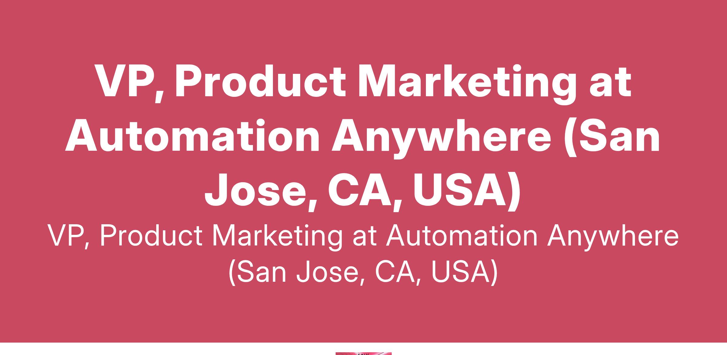 VP, Product Marketing at Automation Anywhere (San Jose, CA, USA)