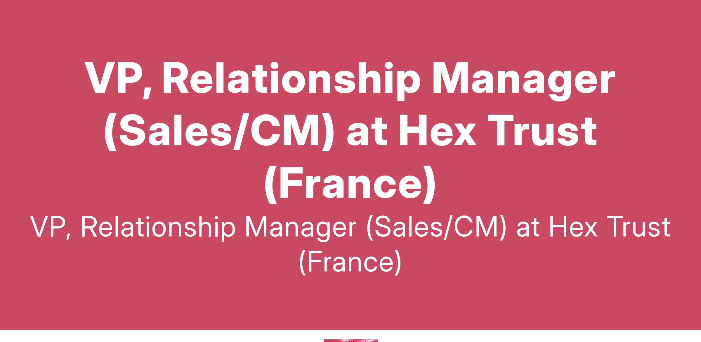 VP, Relationship Manager (Sales/CM) at Hex Trust (France)