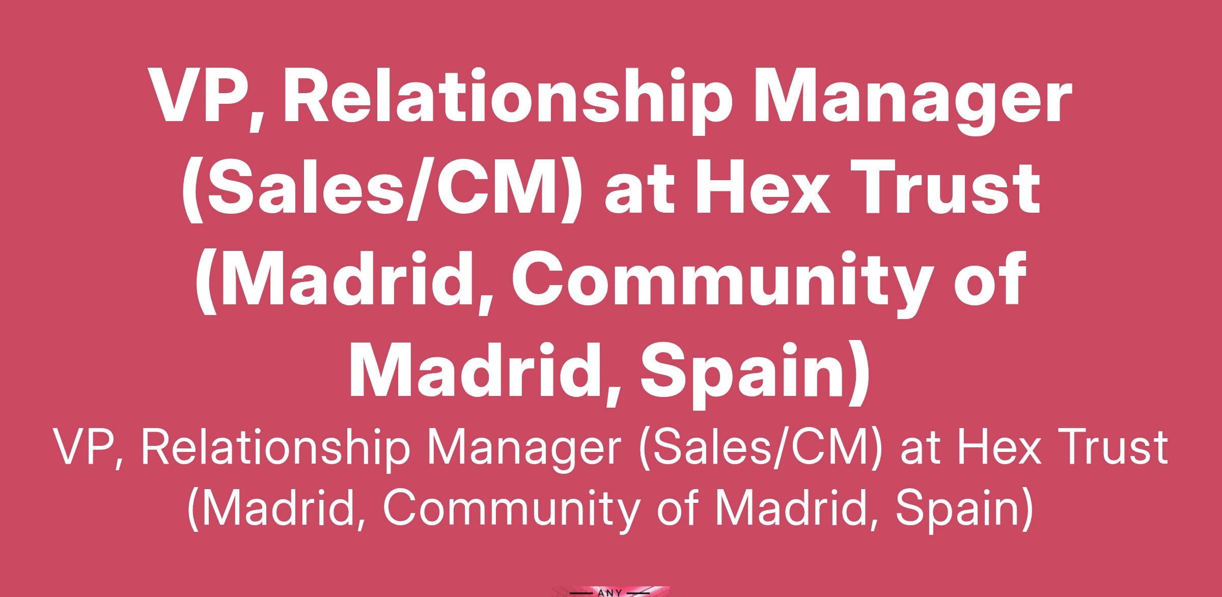 VP, Relationship Manager (Sales/CM) at Hex Trust (Madrid, Community of Madrid, Spain)