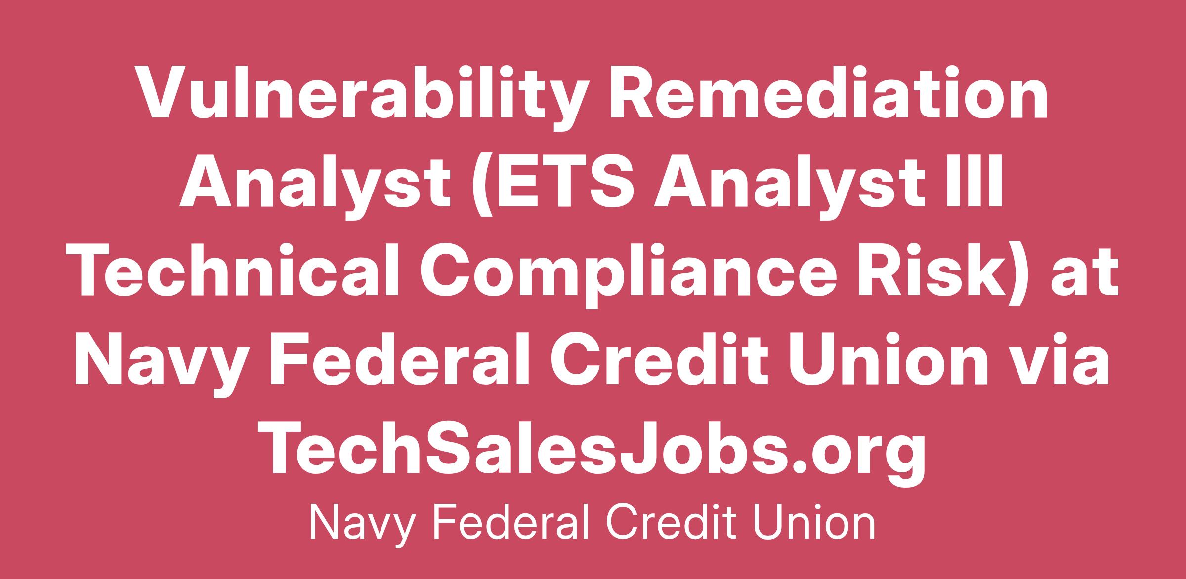 Vulnerability Remediation Analyst (ETS Analyst III Technical Compliance Risk) at Navy Federal Credit Union via TechSalesJobs.org