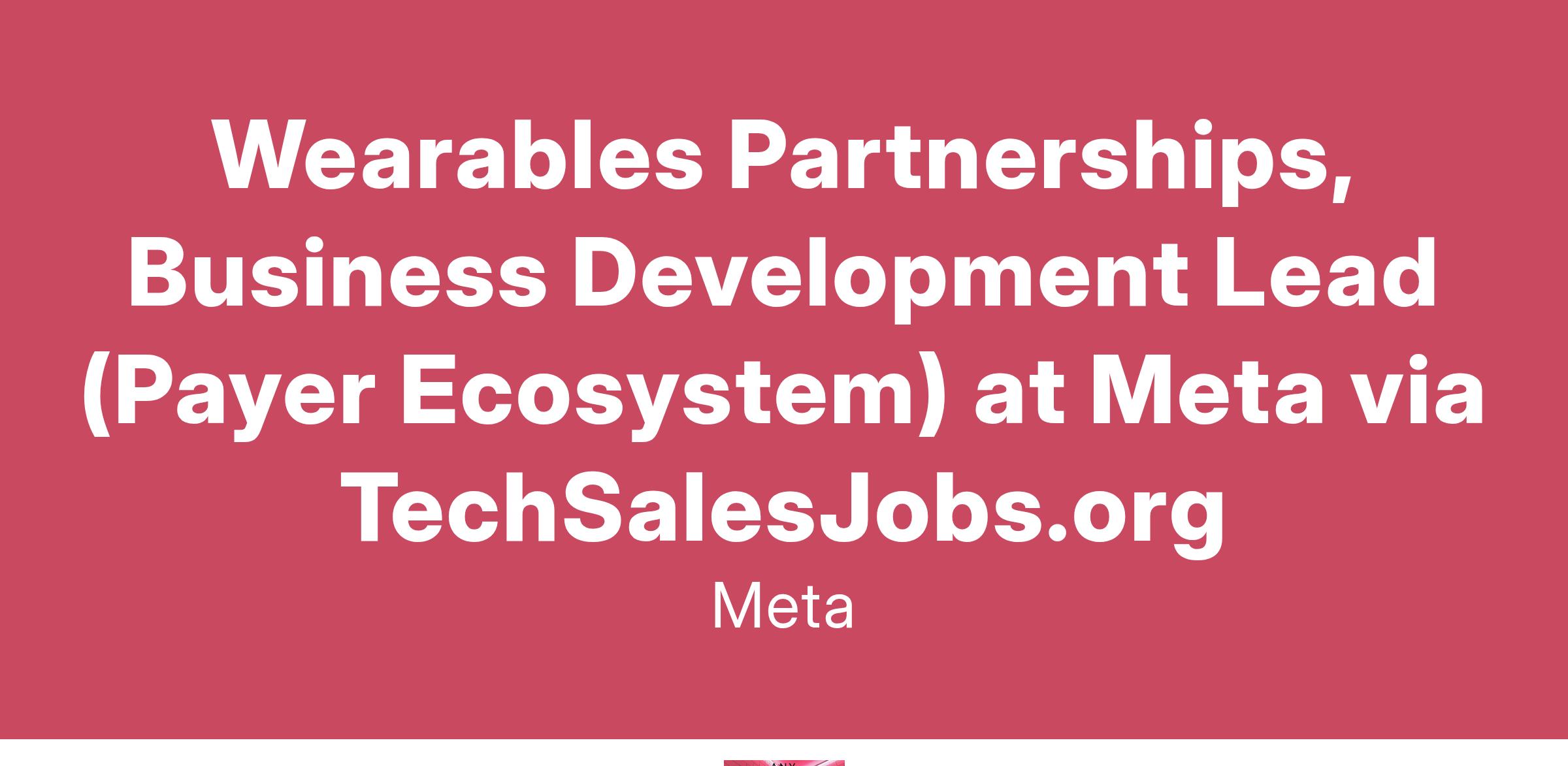 Wearables Partnerships, Business Development Lead (Payer Ecosystem) Responsibilities