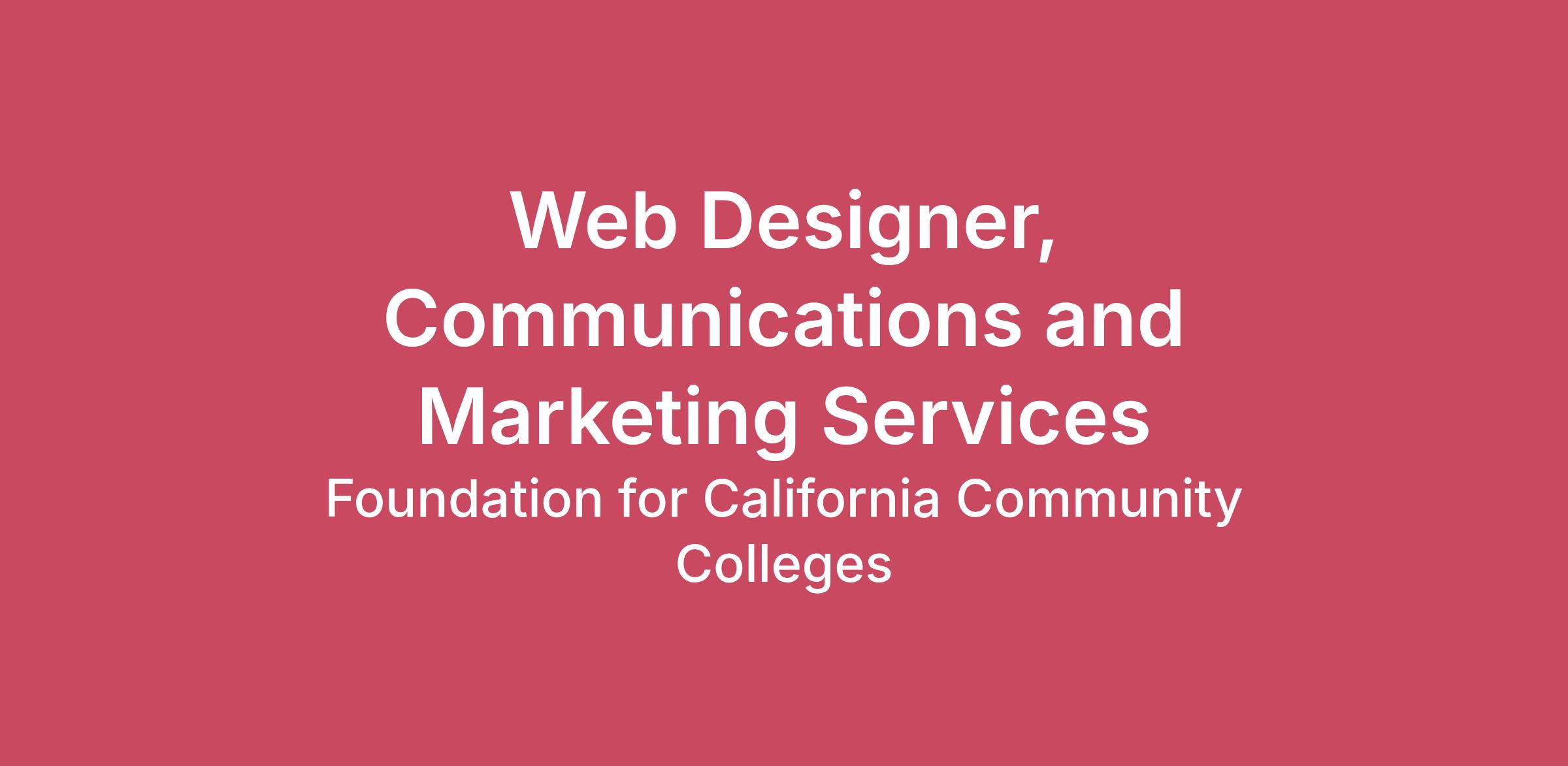 Web Designer100% Remote within California, Must reside in CaliforniaWe are seeking a Web Designer to join the Foundation in its mission of benefitting, supporting, and enhancing the California Community Colleges—the largest and most diverse system of higher education in the nation. The Foundation for California Community Colleges is on a mission to double its impact in the next 10 years. We are a group of relentless optimists and innovators in education, working collaboratively with public and private partners to help improve the student experience and expand pathways to economic and social mobility in communities across California.What You’ll DoThe Web Designer is a UX/UI-forward web role on the Creative Team within the Communications and Marketing Services Unit, working alongside designers and Communications and Marketing Services specialists to bridge design and development and carry approved work from Figma into the live experience. The role leads responsive page design, interaction and motion specications, and build-ready documentation, partnering with Tech Solutions during implementation to ensure high-delity execution.This is not a developer role. It is a design role for someone who understands how modern websites and digital experiences are built and can serve as an informed partner and creative lead throughout development. The Web Designer translates that build knowledge into design decisions, cleaner handos, faster iteration, and stronger outcomes across complex, stakeholder-driven projects supporting FoundationCCC’s 70+ programs and partners. The Web Designer also brings interaction and motion expertise to strengthen clarity, movement, and modern user actions across our web experiences, while contributing design capacity to broader digital and campaign work as needed.This is a full-time, exempt position reporting to the Associate Director of Marketing and Creative Services, working closely with cross-functional teams to strategically align copy, design, and implementation.Lead UX/UI and page-level web design in Figma, translating requirements into clear, accessible, responsive experiences aligned to user needs and program goals.Design scalable page sections and reusable components, maintaining organized, build-ready Figma les and documentation that supports ecient hando.Dene interaction and motion behaviors for web experiences, including component states, transitions, and micro-interactions that support clear user action and understanding.Partner with Tech Solutions developers throughout implementation, participating in working sessions to resolve constraints and ensure high-delity execution from design through launch.Collaborate with Project Marketing Specialists and program teams to clarify goals, audiences, content needs, and page success criteria, and to incorporate feedback eciently.Attributes for SuccessBachelor’s degree in UX/UI design, web design, graphic design, HCI, or related eld, or equivalent practical experience.Demonstrated experience partnering with developers through implementation (not just hando), including iterative review and pre-launch verication.UX/UI fundamentals: information architecture, user ows, interaction design, component systems, and usability-minded decision-making.Strong web design fundamentals: typography, hierarchy, grid systems, responsive design patterns, and content-rst layout thinking.Prociency in Figma: components, auto layout, variants, libraries, prototyping, and le documentation.Strong interaction and motion-for-web fundamentals, including micro-interactions, UI transitions, component state systems, and purposeful movement that supports user understanding.Working knowledge of front-end development concepts and constraints: semantic HTML, CSS layout (exbox/grid), and common JavaScript-driven UI behaviors.Comfort partnering with developers in iterative build environments, including staging review cycles and clear issue documentation.We’re recruiting for mission-driven, passionate, equity-minded individuals with a strong desire to impact and change people’s lives for the betterOur work holds great weight and responsibility, and the opportunity to impact the lives of millionsInnovation, creativity, collaboration, and entrepreneurship are encouraged as employees work to achieve organizational goalsFoundationCCC blends the impact of a non-profit, the culture of an entrepreneurial start-up, and the scale of a state agencyTeam members are hired for their expertise in niche areas across our areas of impact and higher education overall, and for their knowledge of business, philanthropy, technology, communications, and moreWe have a commitment to professional development and an emphasis on shared leadership, to ensure growth for employees and the organization overallWhat we OfferFoundationCCC is fully committed to a “remote-first” philosophy, and recruits and hires talent across the state in fully remote positions, where virtual work is possible. Our headquarters are located in Downtown Sacramento, just blocks from California’s State Capitol.BenefitsCompetitive compensation, generous PTO, holidaysMedical, dental, and vision plans, Flexible Spending Accounts, and Health Savings Accounts (HSA), Employee Assistance Program (EAP), and Wellness offeringsCalPERS retirement program and optional 403(b) and 457 Retirement plansTuition reimbursementPublic Service Loan Forgiveness certified employerIf you have any questions, please email us at jobs@foundationccc.org.Budgeted Annual Salary Pay Range:$70,000.00 - $75,000.00Final salary and rates are based on education, experience, skills relevant to the role, and internal equity.