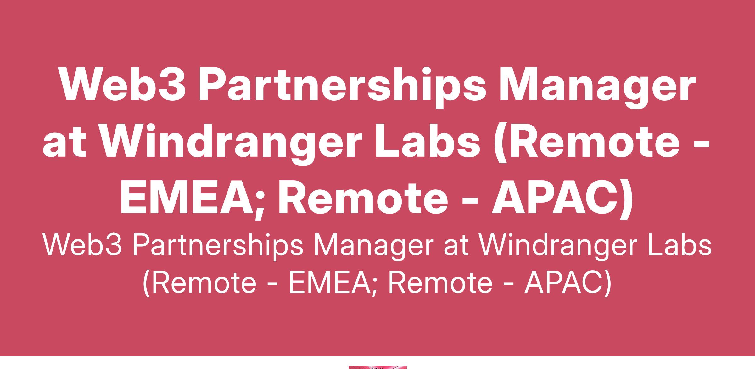 Web3 Partnerships Manager at Windranger Labs (Remote - EMEA; Remote - APAC)