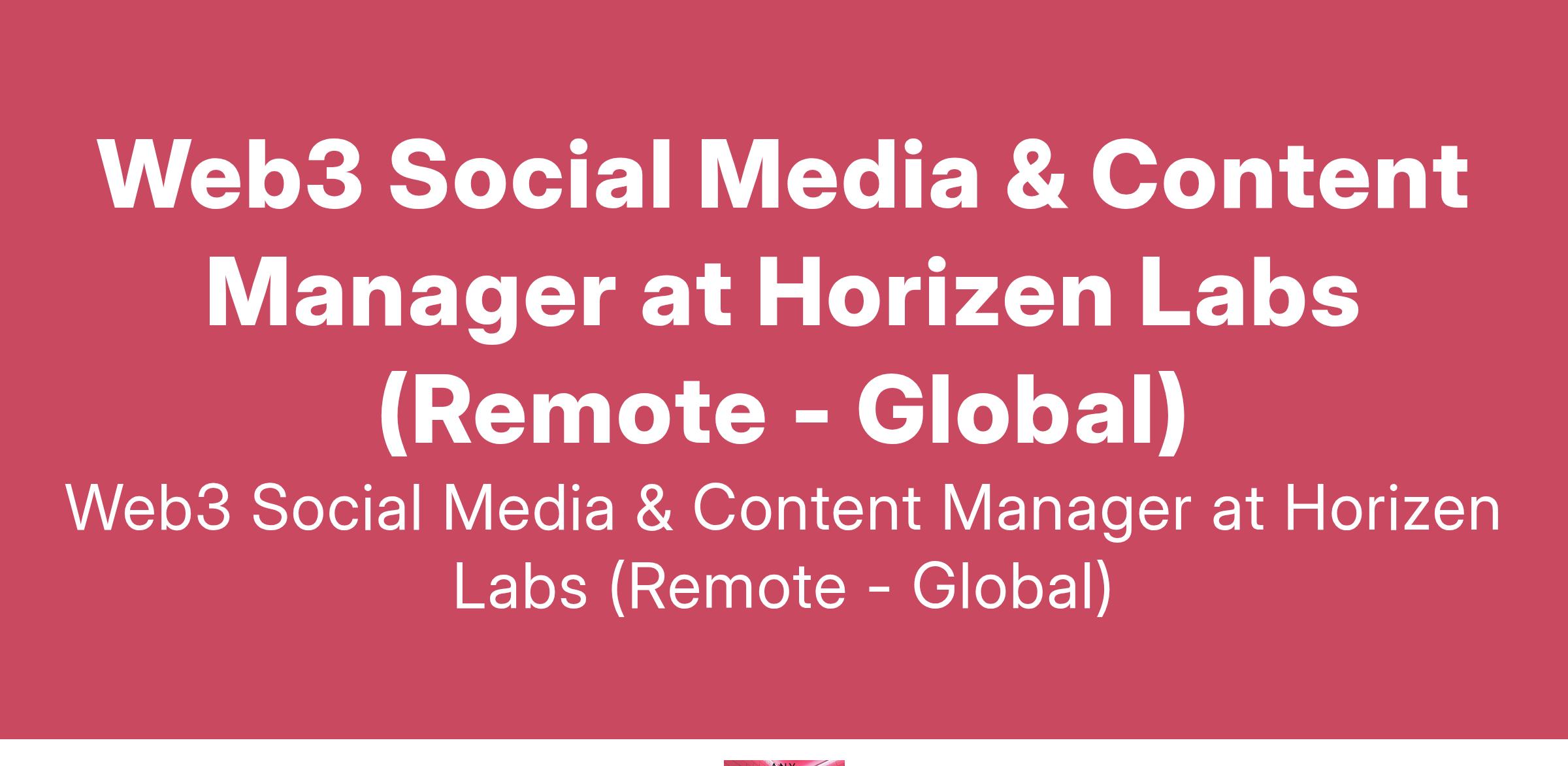 Web3 Social Media & Content Manager at Horizen Labs (Remote - Global)