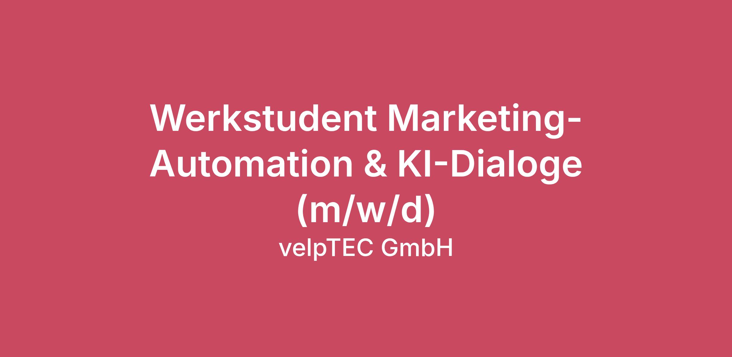Über unsRichte dich neu aus. Auf deine Zukunft. Mit velpTEC edutainment.velpTEC edutainment ist ein auf innovative Technologien ausgerichtetes Weiterbildungsinstitut, das Erfahrungen aus Wirtschaft, Zukunftsforschung und neuen Bildungsansätzen verbindet. Wir unterstützen Menschen durch unsere Bildungsangebote praxisnah dabei, ihre Fähigkeiten für künftige Zeiten zu stärken und damit aktiv ihren Lebensweg zu gestalten. In unserem Handeln legen wir Wert auf gesellschaftliche Verantwortung, Fortschritt und Selbstbestimmung.Bereit für eine neue Mission? Dann entdecke jetzt deine Zukunftsperspektive bei velpTEC und werde Teil unseres multiprofessionellen und diversen Teams.Das solltest du mitbringen Eingeschriebener Masterstudent (m/w/d) im Bereich Wirtschaftsinformatik, BWL, Digital Business, Marketing oder einem vergleichbaren StudiengangStarkes Interesse an Marketing-Technologien, Automatisierung und KI-AnwendungenErste praktische Erfahrungen mit Automationen, CRM-Systemen, Marketing-Tools oder Low-Code/No-Code-Plattformen von VorteilAnalytische Denkweise sowie strukturierte und selbstständige ArbeitsweiseSehr gute Deutschkenntnisse in Wort und Schrift, gute Englischkenntnisse wünschenswertHohe Lernbereitschaft und technisches Verständnis für digitale ProzesseWas dich bei velpTEC erwartetFlexibilität: Du hast einen Arzttermin, musst deine Kinder zur Kita oder Schule bringen oder hast einen anderen wichtigen Termin? Kein Problem! Bei uns hast du flexible Arbeitszeiten und die Möglichkeit, im Homeoffice zu arbeiten. Eigenverantwortung & Hands-On-Mentalität: Täglich erwarten dich abwechslungsreiche Herausforderungen, bei denen du ein hohes Maß an Eigenverantwortung zeigen kannst. Du hast eine kreative Idee oder einen Verbesserungsvorschlag? Wir sind immer offen für Innovationen und freuen uns über einen Blick über den Tellerrand.Weiterbildungsmöglichkeiten: Du erhältst kostenlosen Zugang zu unseren internen Weiterbildungsangeboten, die dich beruflich weiterbringen. Dafür stehen dir jährlich drei „Educational Days“ zur Verfügung, die du für deine Weiterbildung nutzen kannst. Firmenfitness & Wellness: Deine Gesundheit und dein Wohlbefinden liegt uns am Herzen. Über unseren Partner EGYM Wellpass hast du Zugang zu über 9.000 Fitness- und Yogastudios, Schwimmbädern, Wellnessangeboten sowie Crossfit- und Boulderhallen in Deutschland und Österreich.Ehrenamtliches Engagement: Wir unterstützen dein soziales Engagement und honorieren deine ehrenamtliche Tätigkeit mit einem zusätzlichen Sonderurlaubstag pro Jahr. Betriebliche Vorsorge: Deine Zukunft und Gesundheit sind uns wichtig. Daher bieten wir dir eine betriebliche Altersvorsorge und eine betriebliche Krankenversicherung an.Spaß & Freude im Team: Wir wissen, dass persönlicher Austausch wichtig ist. Bei uns erlebst du eine offene Duz-Kultur und regelmäßige Teamevents.Was deine Aufgaben sein werdenErstellung und Weiterentwicklung von Marketing-Automationen, Workflows und BlueprintsKonzeption, Konfiguration und Optimierung von KI-basierten Dialog-Assistenten (z. B. Chatbots, Conversational Flows)Analyse von Use Cases entlang der Customer Journey und Ableitung geeigneter AutomationslösungenZusammenarbeit mit Marketing, Vertrieb und IT zur Umsetzung datengetriebener KampagnenDokumentation von Automationen, Logiken und Best PracticesUnterstützung bei Tests, Qualitätssicherung und kontinuierlicher OptimierungRückfragen?Schreib uns einfach an karriere@velptec.de – wir freuen uns auf Deine Nachricht!