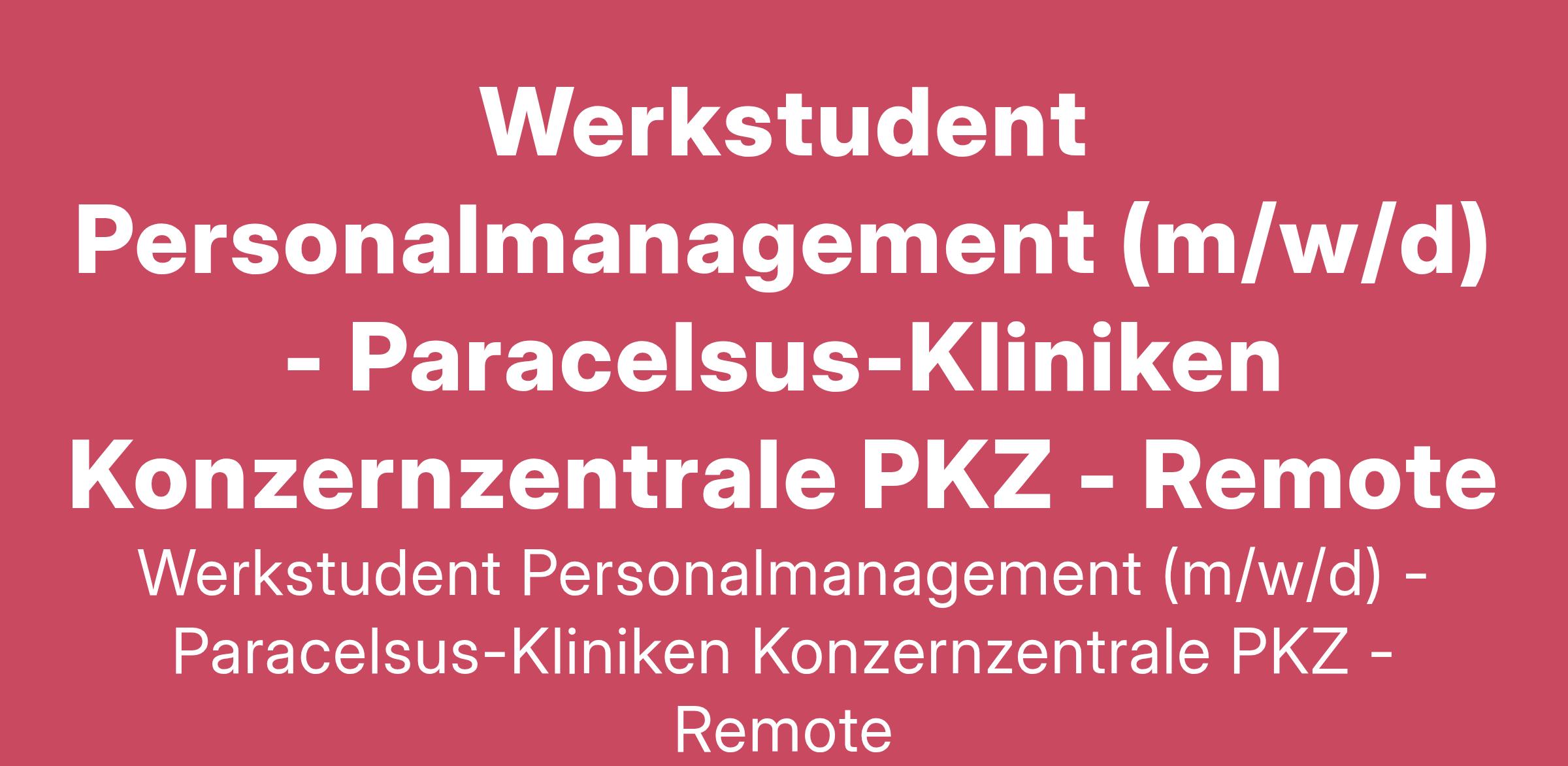 Werkstudent Personalmanagement (m/w/d) - Paracelsus-Kliniken Konzernzentrale PKZ - Remote