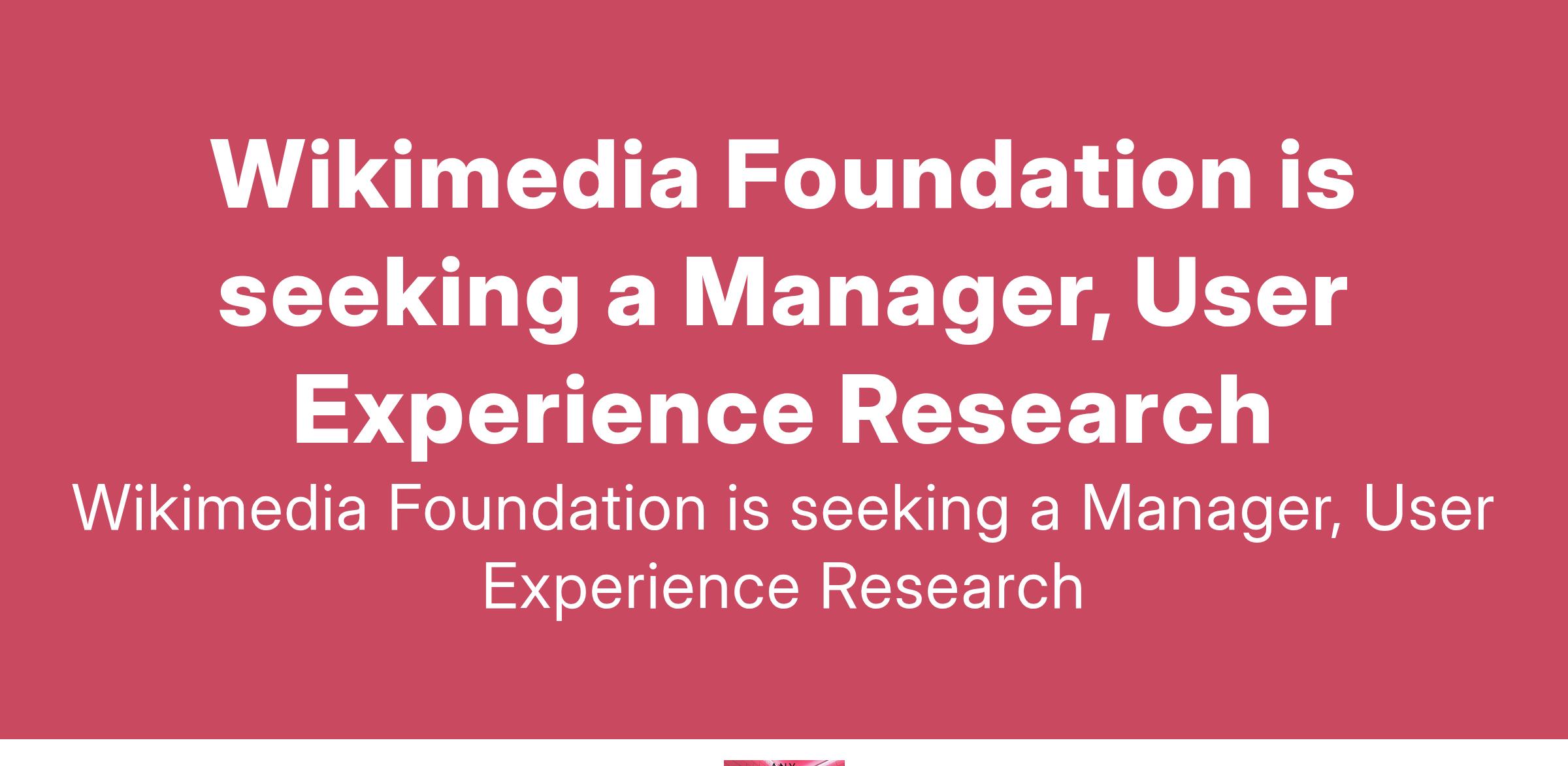 Wikimedia Foundation is seeking a Manager, User Experience Research