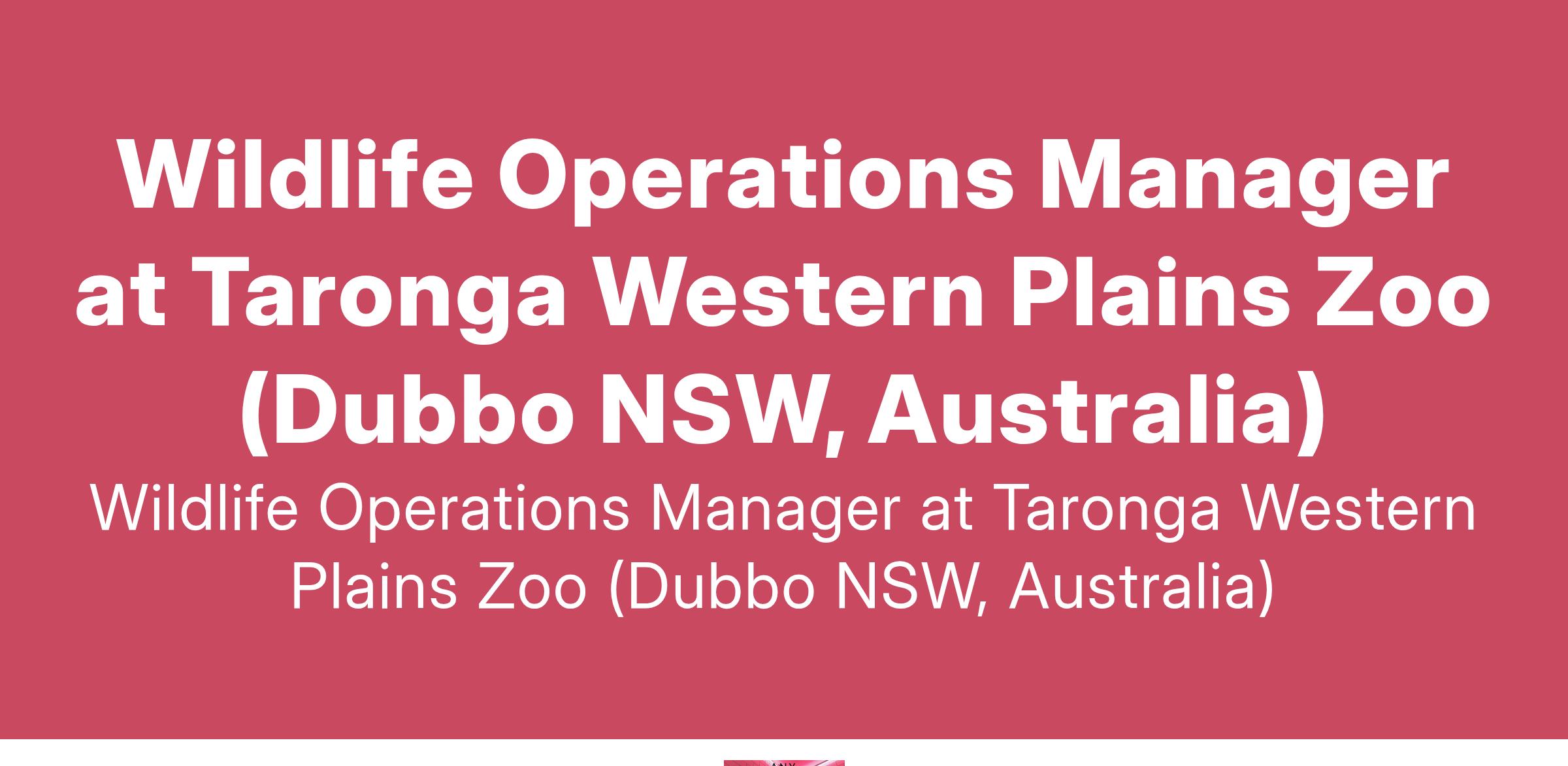 Wildlife Operations Manager at Taronga Western Plains Zoo (Dubbo NSW, Australia)