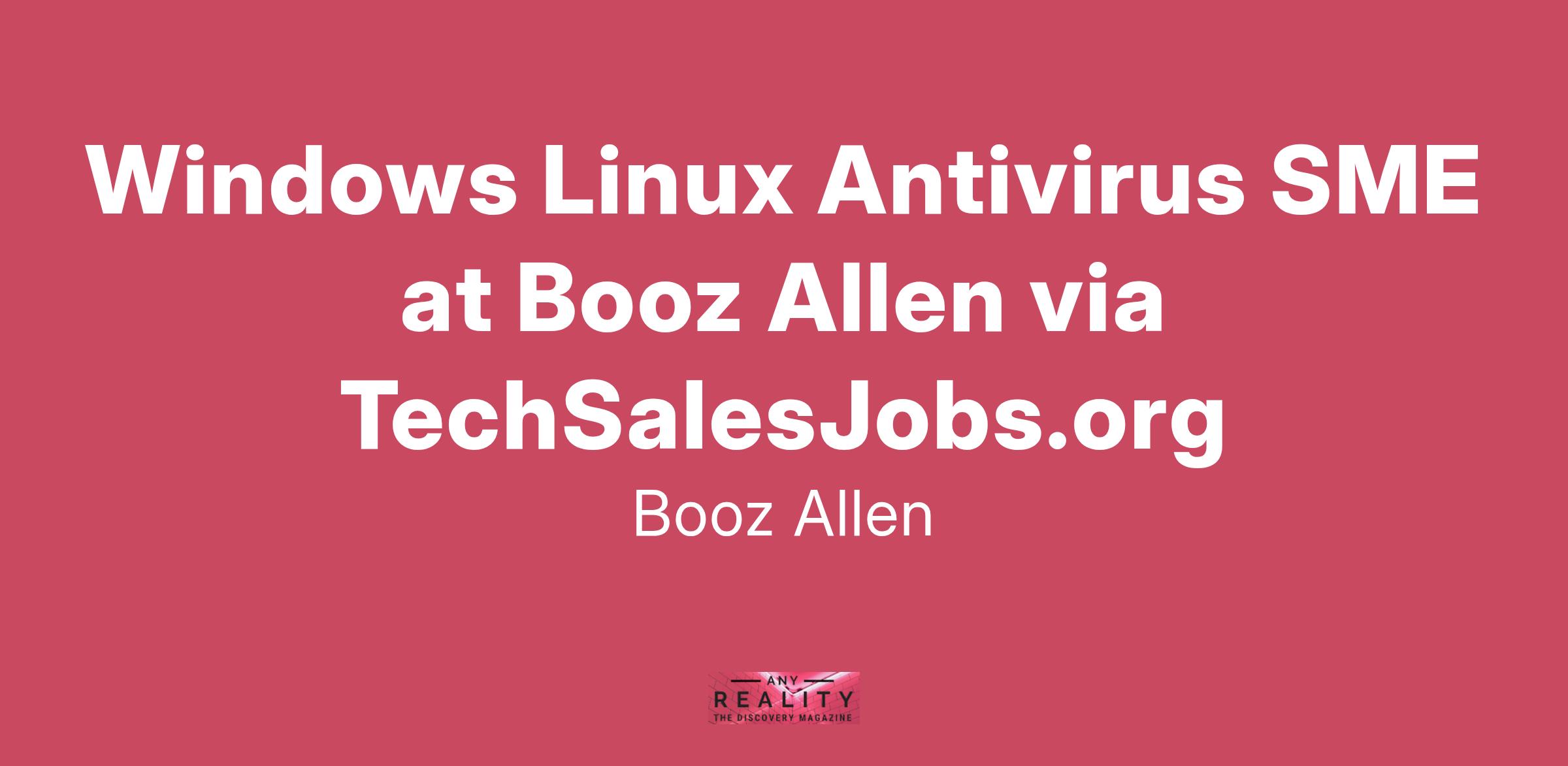 Windows Linux Antivirus SME at Booz Allen via TechSalesJobs.org