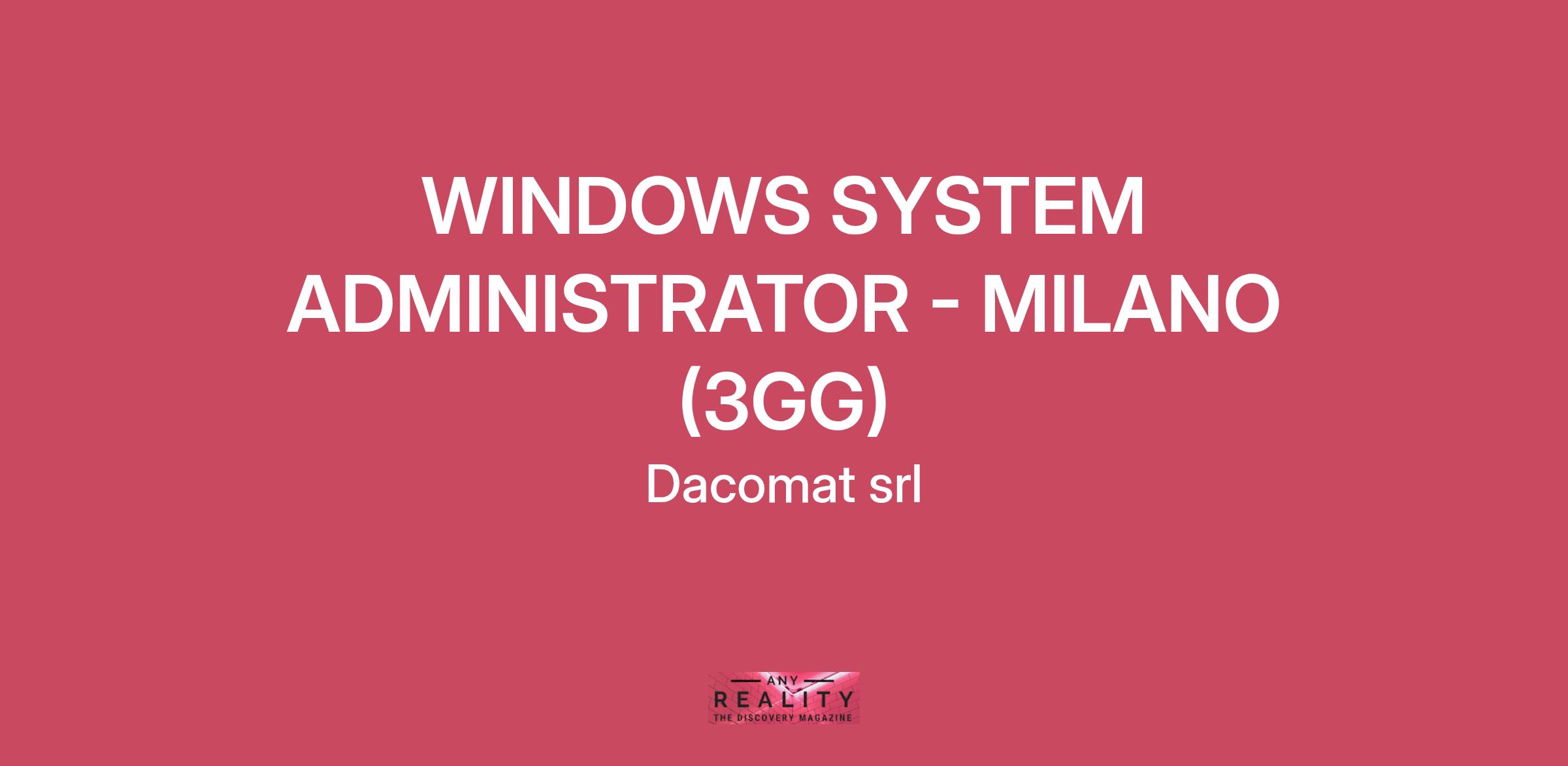WINDOWS SYSTEM ADMINISTRATOR - MILANO (3GG)