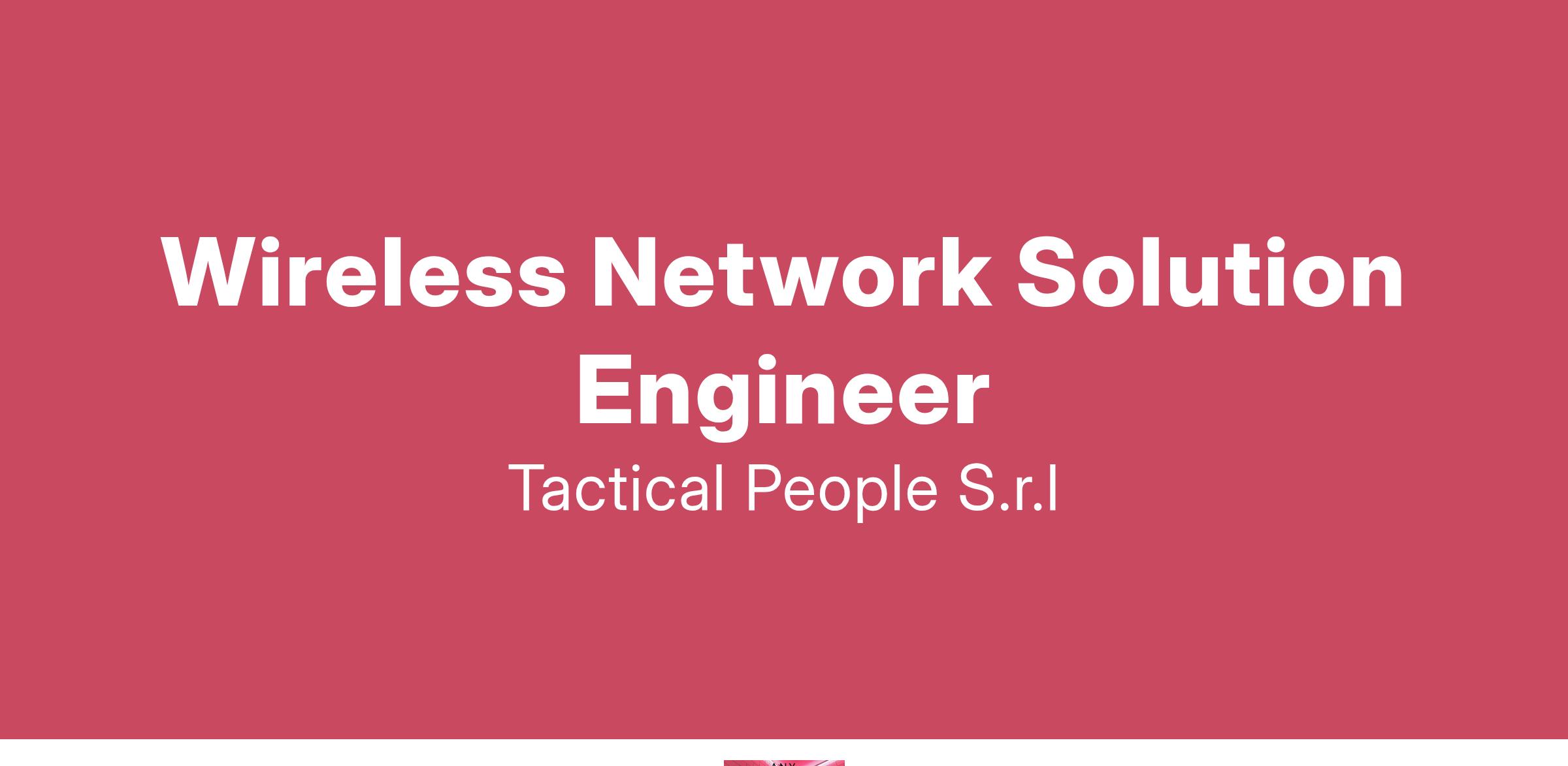 Unisciti a TACTICAL PEOPLE: Innovazione, Persone e Crescita nel Cuore della Digital Transformation Da oltre 20 anni, TACTICAL PEOPLE si posiziona come leader nel mercato ICT, guidando con passione e competenza i nostri clienti di medie e grandi dimensioni attraverso il dinamico percorso della digital transformation. La nostra mission è chiara: non solo abbracciare il cambiamento tecnologico, ma guidarlo, creando soluzioni all'avanguardia che plasmino il futuro digitale. In TACTICAL PEOPLE, crediamo fortemente nel mettere le persone al centro di ogni nostra iniziativa. Le persone sono il cuore pulsante della nostra azienda; il loro benessere, la loro crescita e il loro sviluppo sono la nostra priorità. Ci impegniamo a condividere le strategie aziendali con trasparenza e a fornire formazione e supporto a ogni livello, garantendo che ogni membro del team sia equipaggiato per eccellere e innovare. Stiamo cercando individui che condividano la nostra visione, che siano guidati dalla passione per la tecnologia e che desiderino essere protagonisti nella costruzione di un futuro digitale più luminoso. Se sei pronto a far parte di una squadra che valorizza il talento, incoraggia la crescita personale e professionale e lavora in prima linea nel settore della digital transformation, TACTICAL PEOPLE è il posto giusto per te. Posizione Aperta: Wireless Network Solution Engineer Sede: ibrido con presenza su Sesto Fiorentino, Viaggi brevi all’estero richiesti Descrizione del ruolo: Il candidato ideale deve avere almeno 5 anni in ruoli analoghi, con comprovate esperienze nella configurazione e distribuzione di reti wireless. Cosa offriamo: Inserimento immediato in una Tech Community giovane e dinamica. TACTICAL LEARNING HUB, con corsi di aggiornamento e formazione. Il presente annuncio è rivolto ad entrambi i sessi, ai sensi delle leggi 903/77 e 125/91, e a persone di tutte le età e tutte le nazionalità, ai sensi dei decreti legislativi 215/03 e 216/03. I curricula dovranno pervenire completi di dicitura che autorizza il trattamento dei propri dati: “Si autorizza al trattamento dei dati personali ai sensi del D. Lgs. 196/2003.