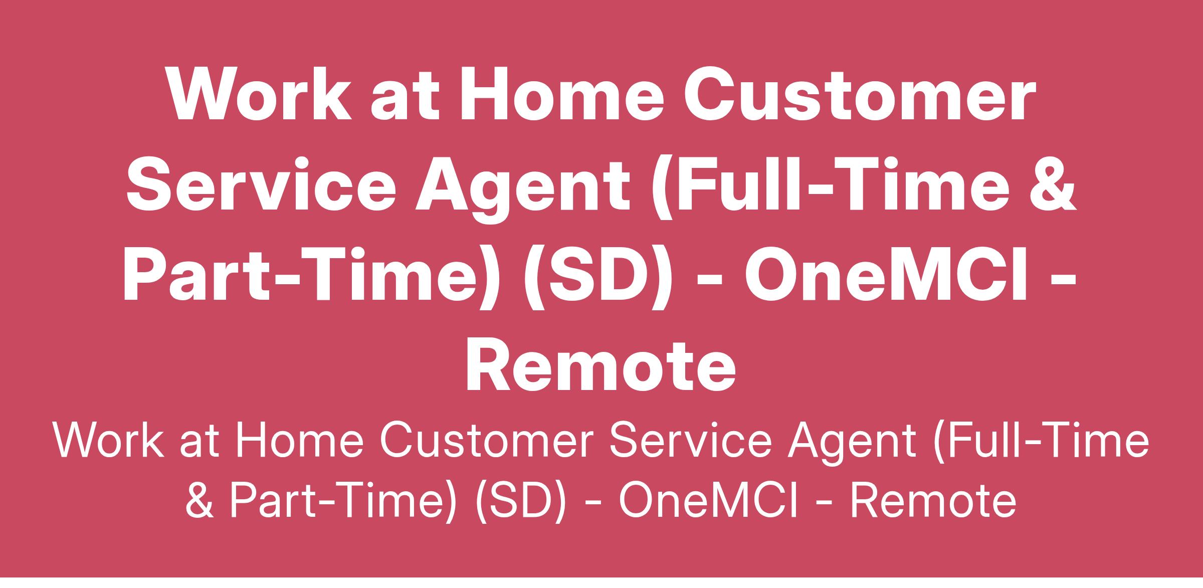 Work at Home Customer Service Agent (Full-Time & Part-Time) (SD) - OneMCI - Remote