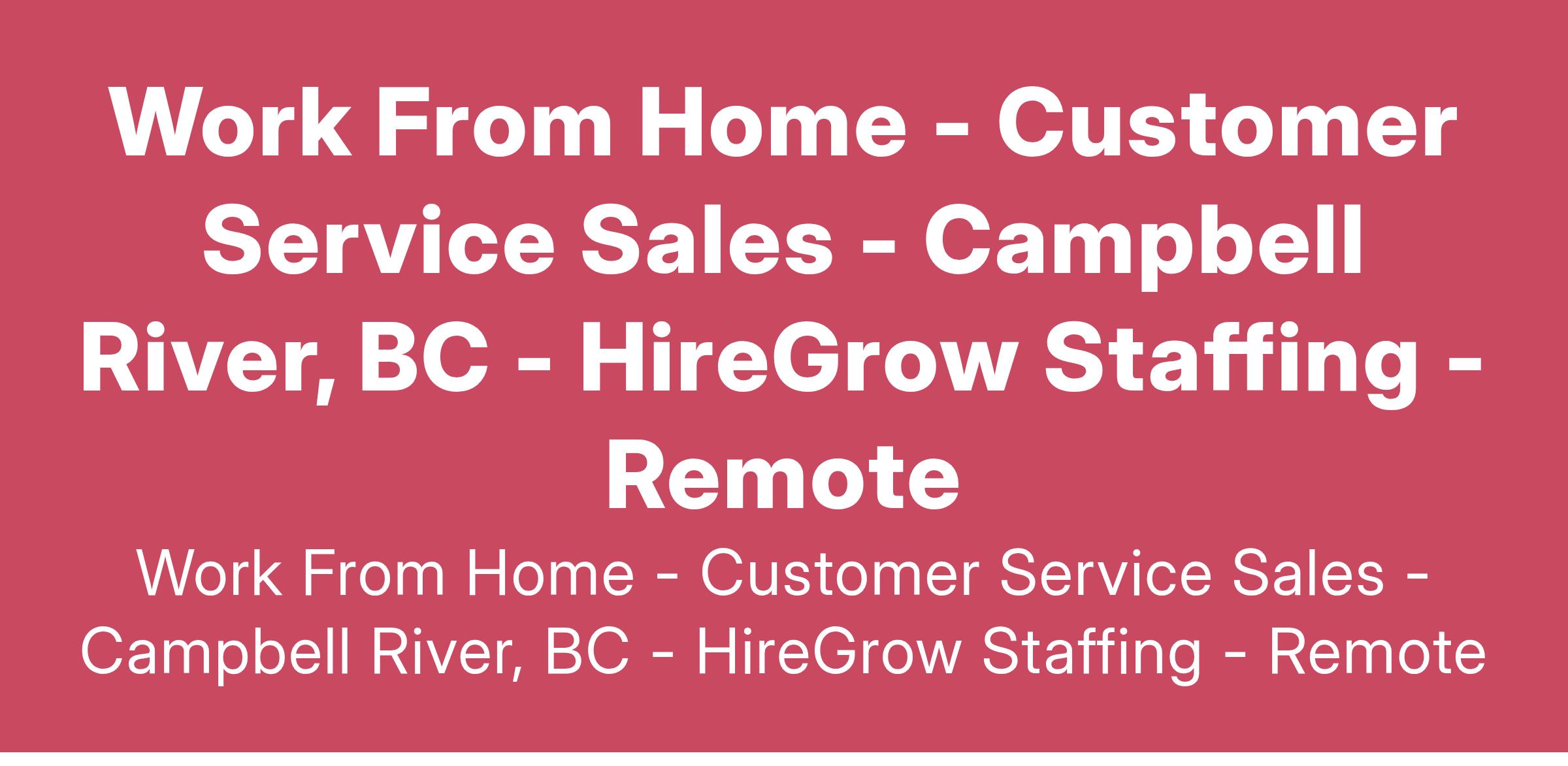 Work From Home - Customer Service Sales - Campbell River, BC - HireGrow Staffing - Remote