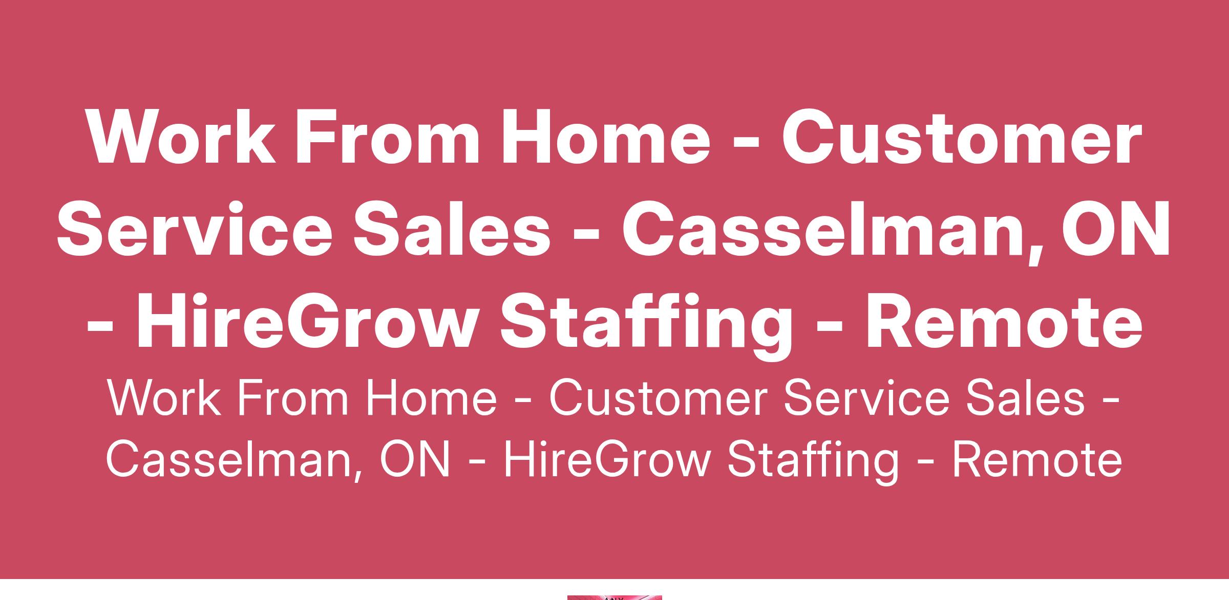 Work From Home - Customer Service Sales - Casselman, ON - HireGrow Staffing - Remote