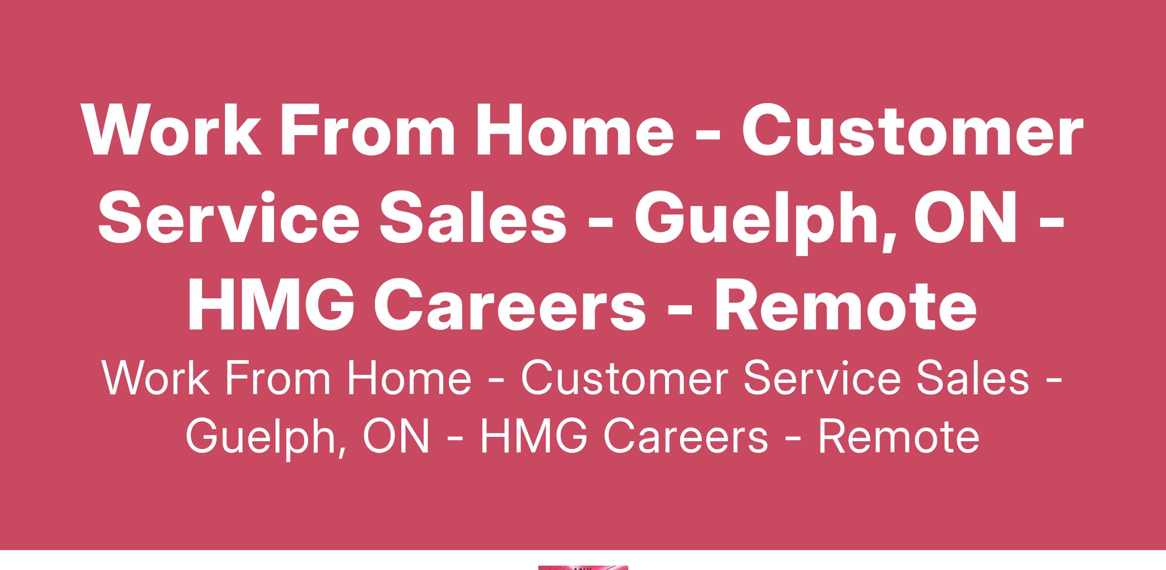 Work From Home - Customer Service Sales - Guelph, ON - HMG Careers - Remote