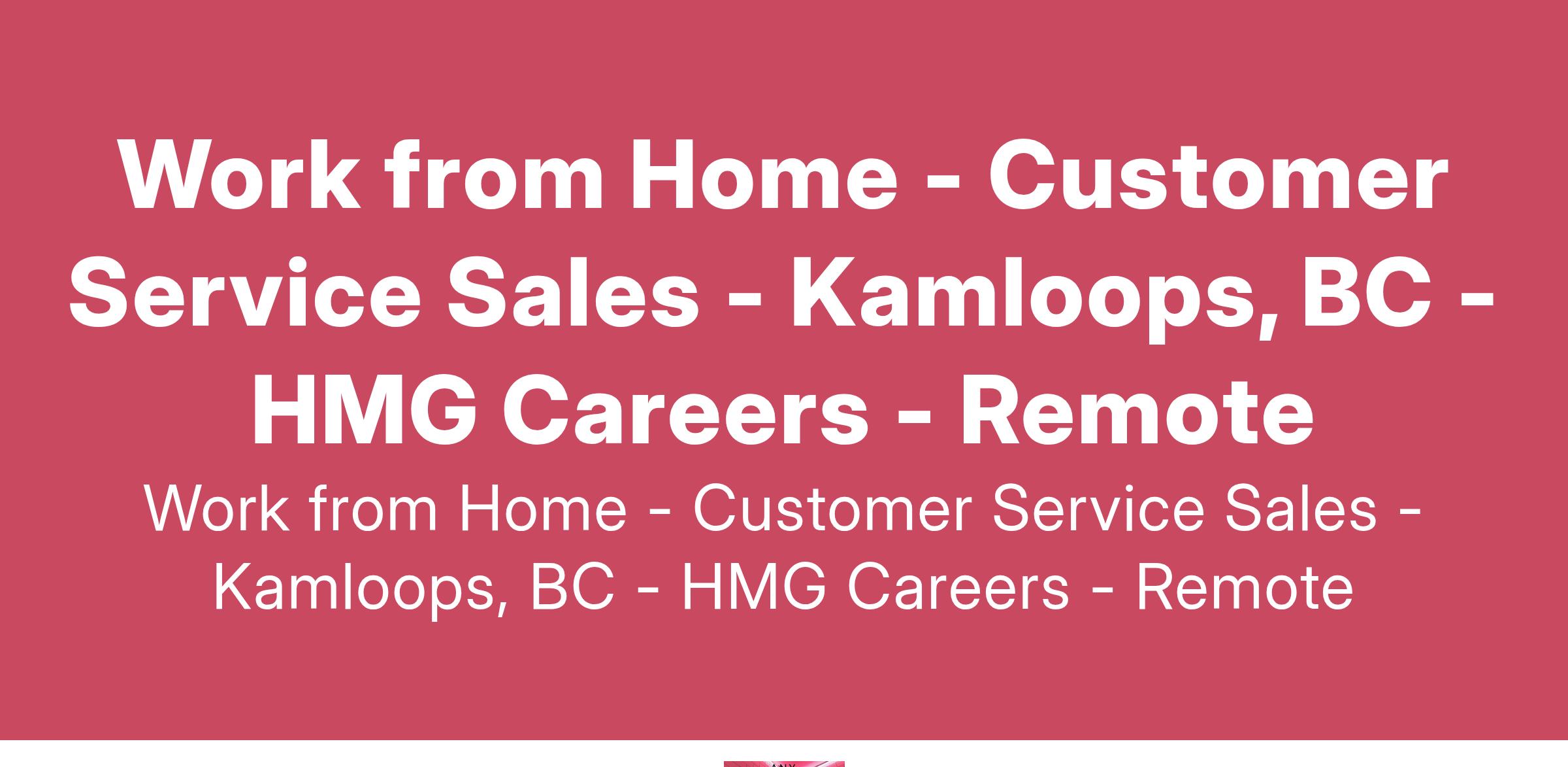 Work from Home - Customer Service Sales - Kamloops, BC - HMG Careers - Remote