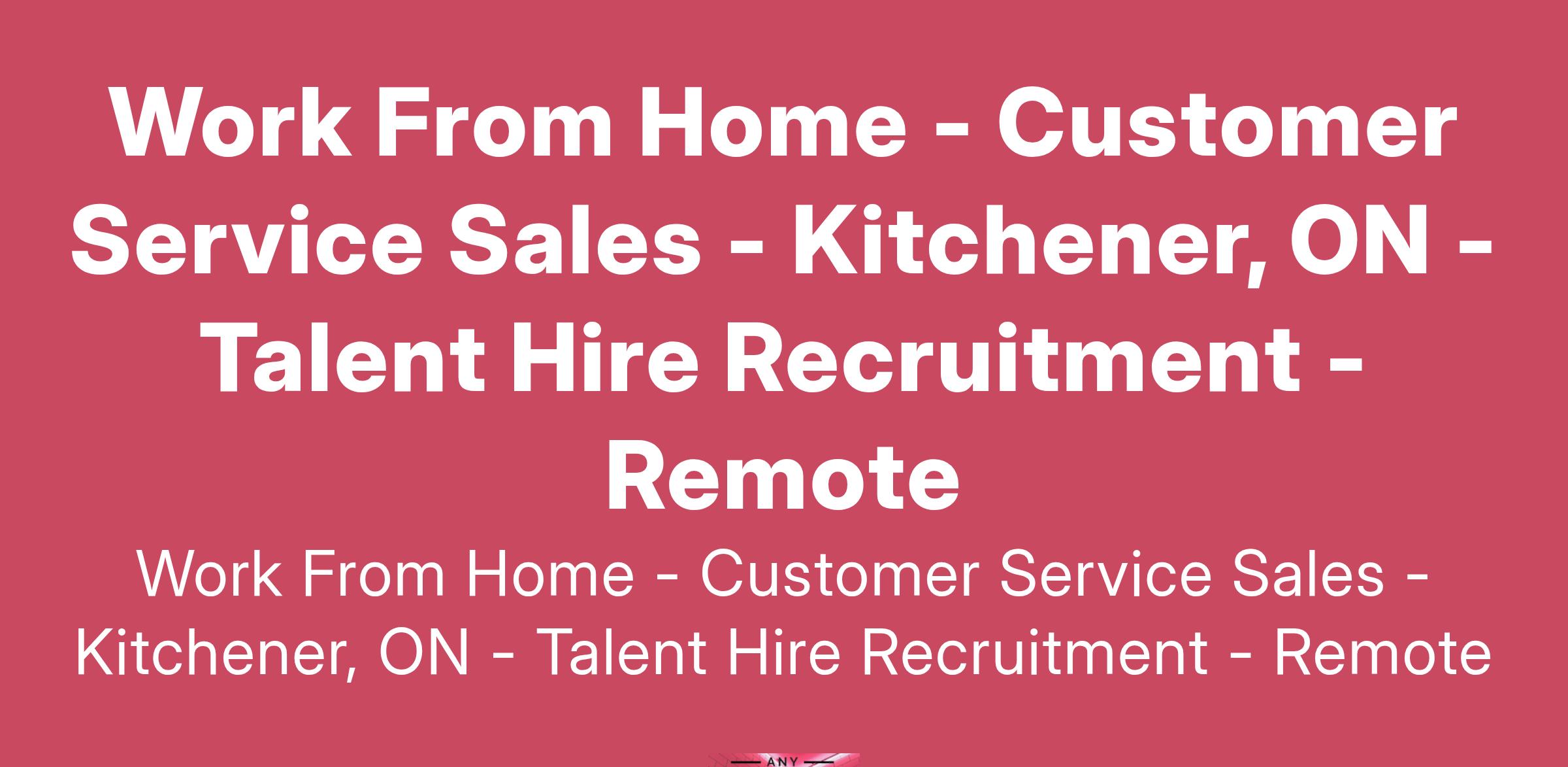 Work From Home - Customer Service Sales - Kitchener, ON - Talent Hire Recruitment - Remote