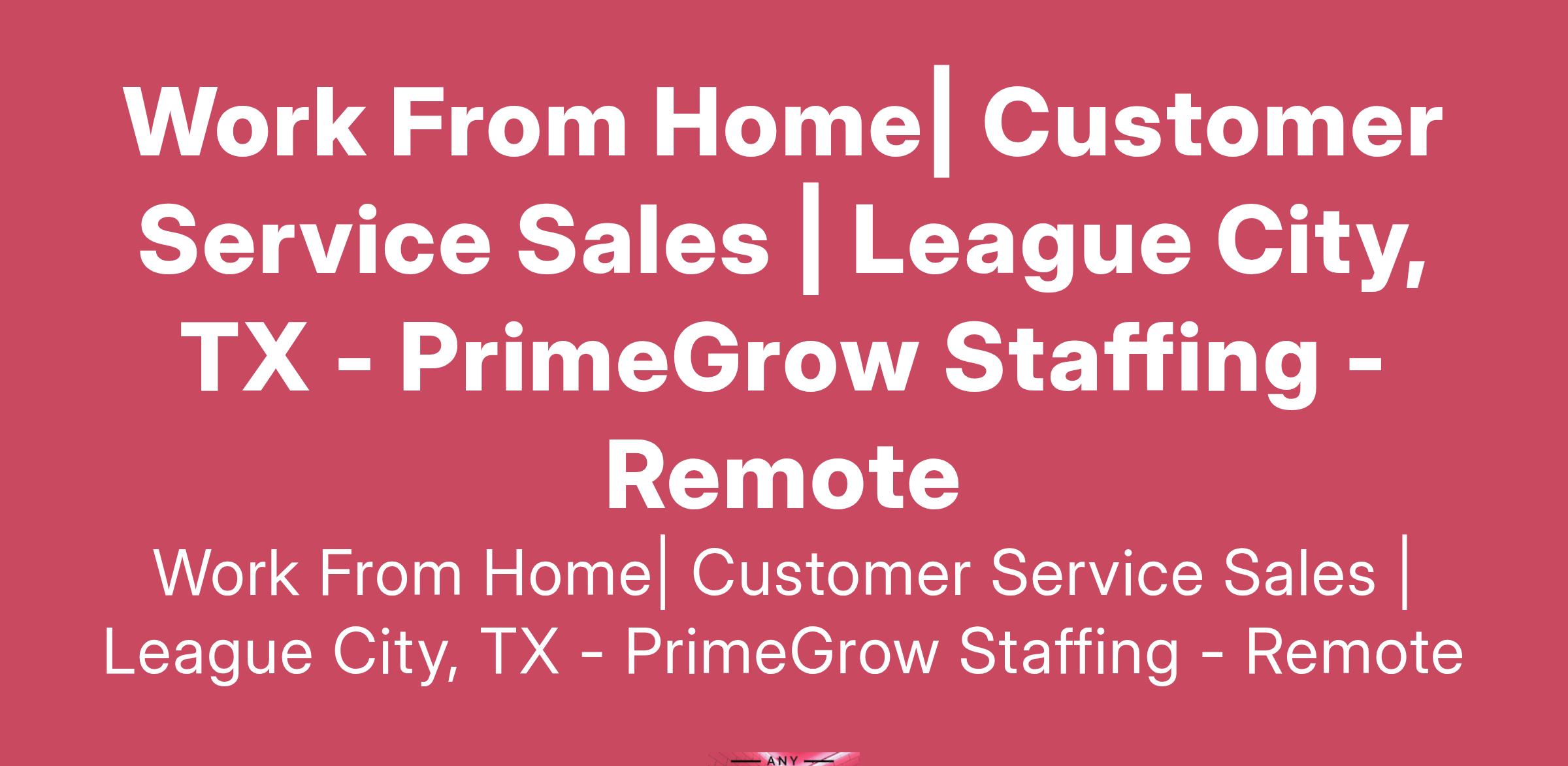 Work From Home| Customer Service Sales | League City, TX - PrimeGrow Staffing - Remote