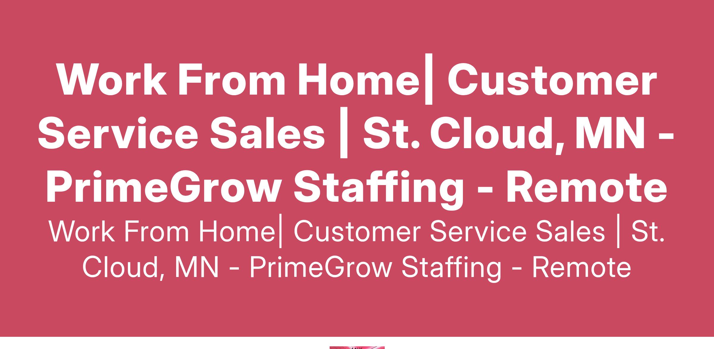 Work From Home| Customer Service Sales | St. Cloud, MN - PrimeGrow Staffing - Remote