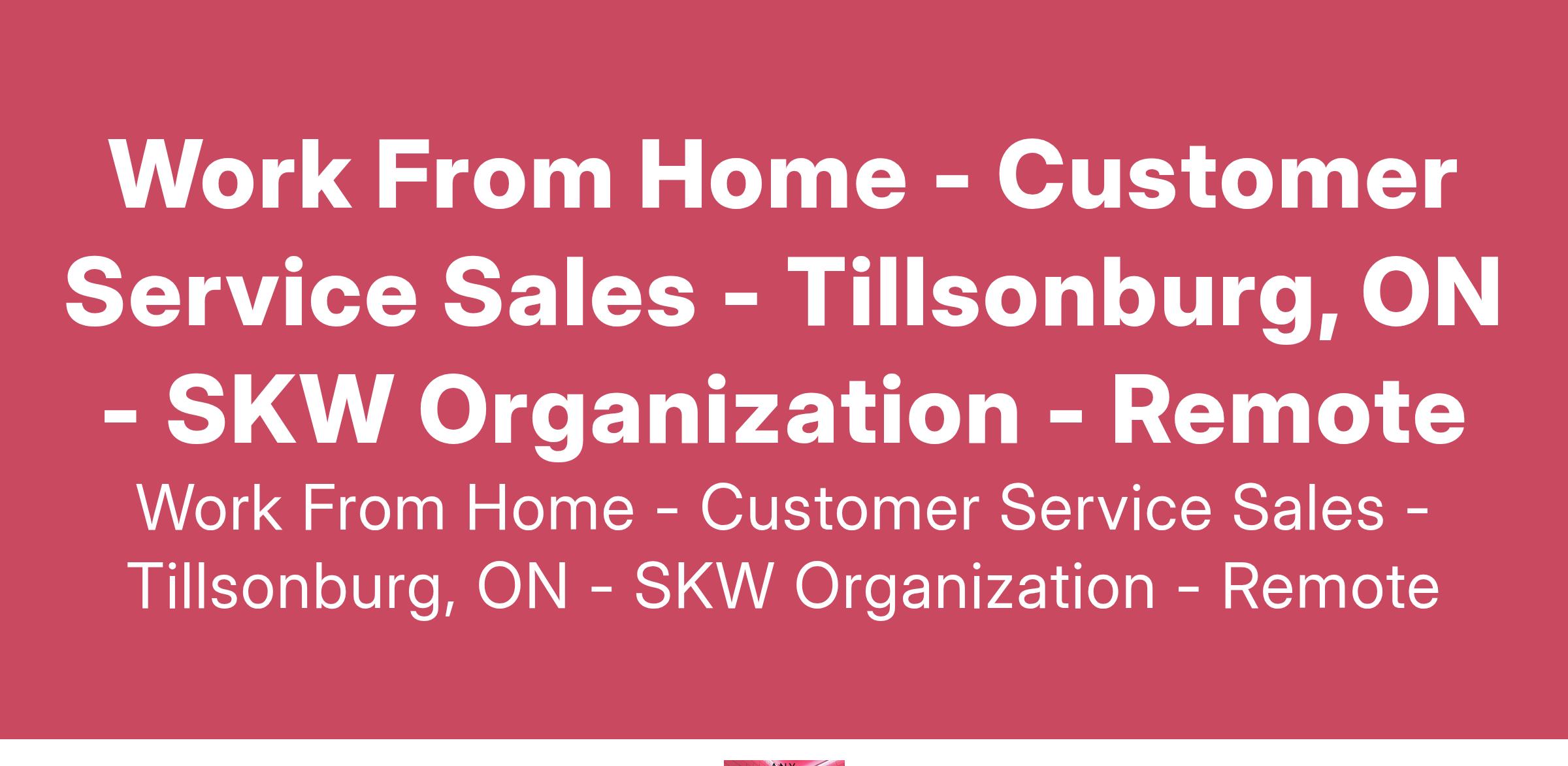 Work From Home - Customer Service Sales - Tillsonburg, ON - SKW Organization - Remote