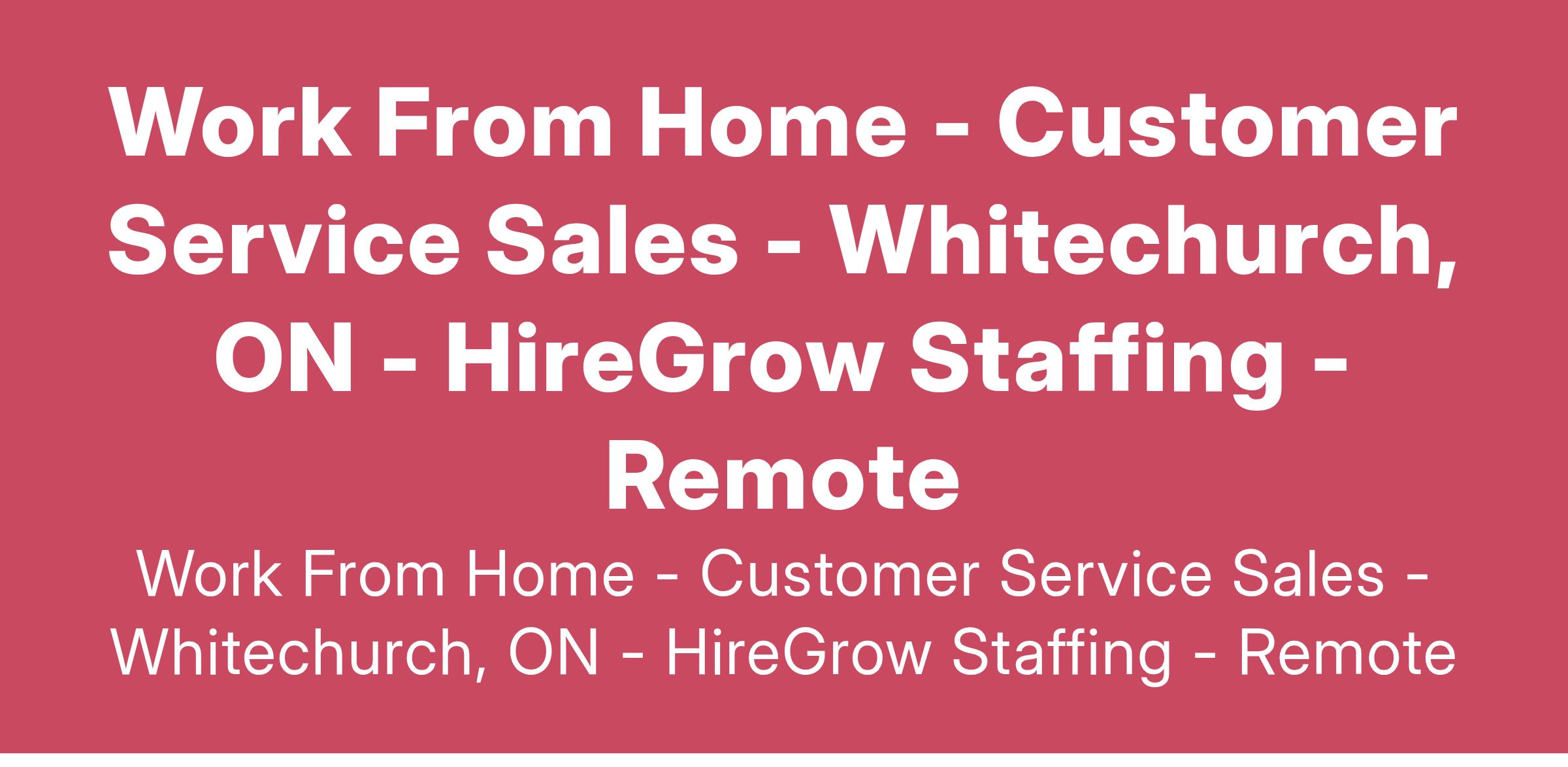 Work From Home - Customer Service Sales - Whitechurch, ON - HireGrow Staffing - Remote