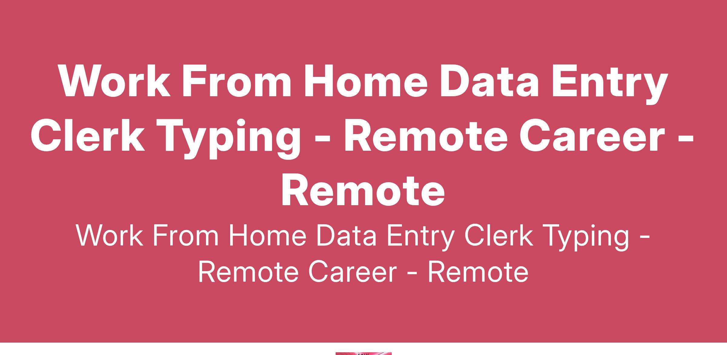 Work From Home Data Entry Clerk Typing - Full/Part Time