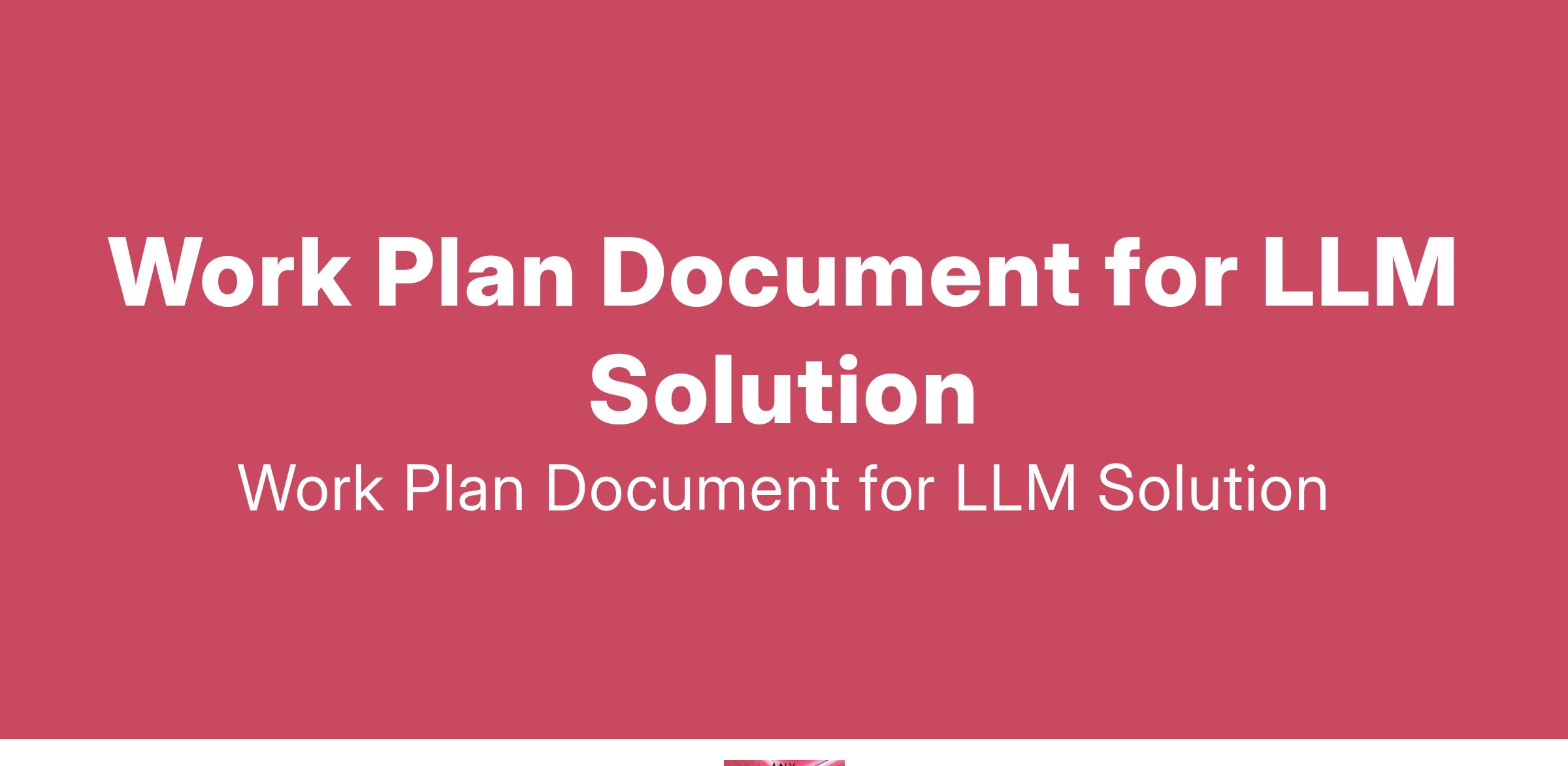 I'm in need of a work plan document for a large language model (LLM) based solution. The specifics of the project and its goals are yet to be determined. Your role will involve creating a comprehensive... (Budget: $10 - $20 USD, Jobs: Artificial Intelligence, Large Language Models (LLMs), LLaMA, Machine Learning (ML), Python)
