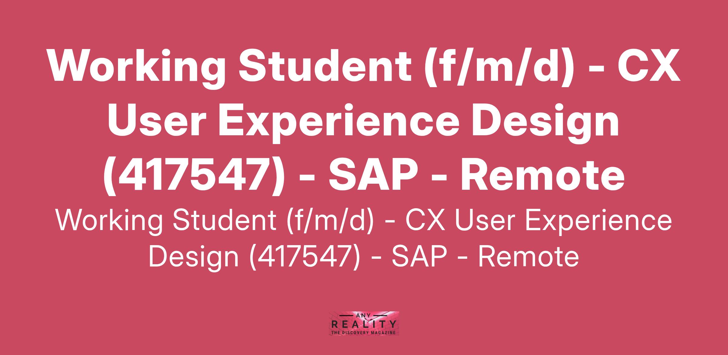 In this role, you will support SAP CX User Experience Design in day-to-day activities.