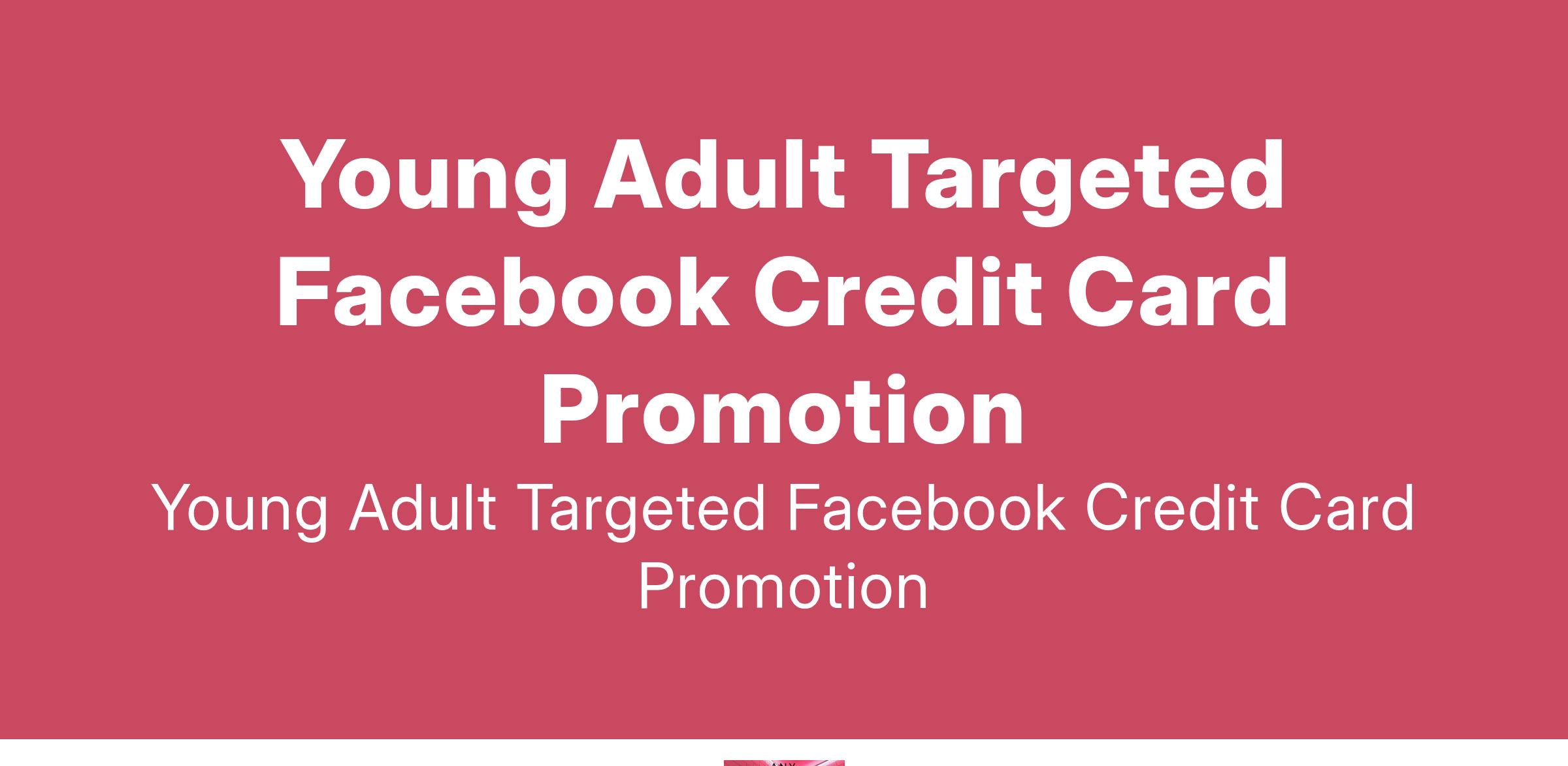 I'm looking to hire a social media influencer with a strong presence on Facebook to promote and submit credit cards on my behalf. Key details: - The target demographic for this campaign is primarily young adults aged 18-25... (Budget: $250 - $750 AUD, Jobs: Content Writing, Creative Writing, Facebook Marketing, Internet Marketing, Social Media Marketing)