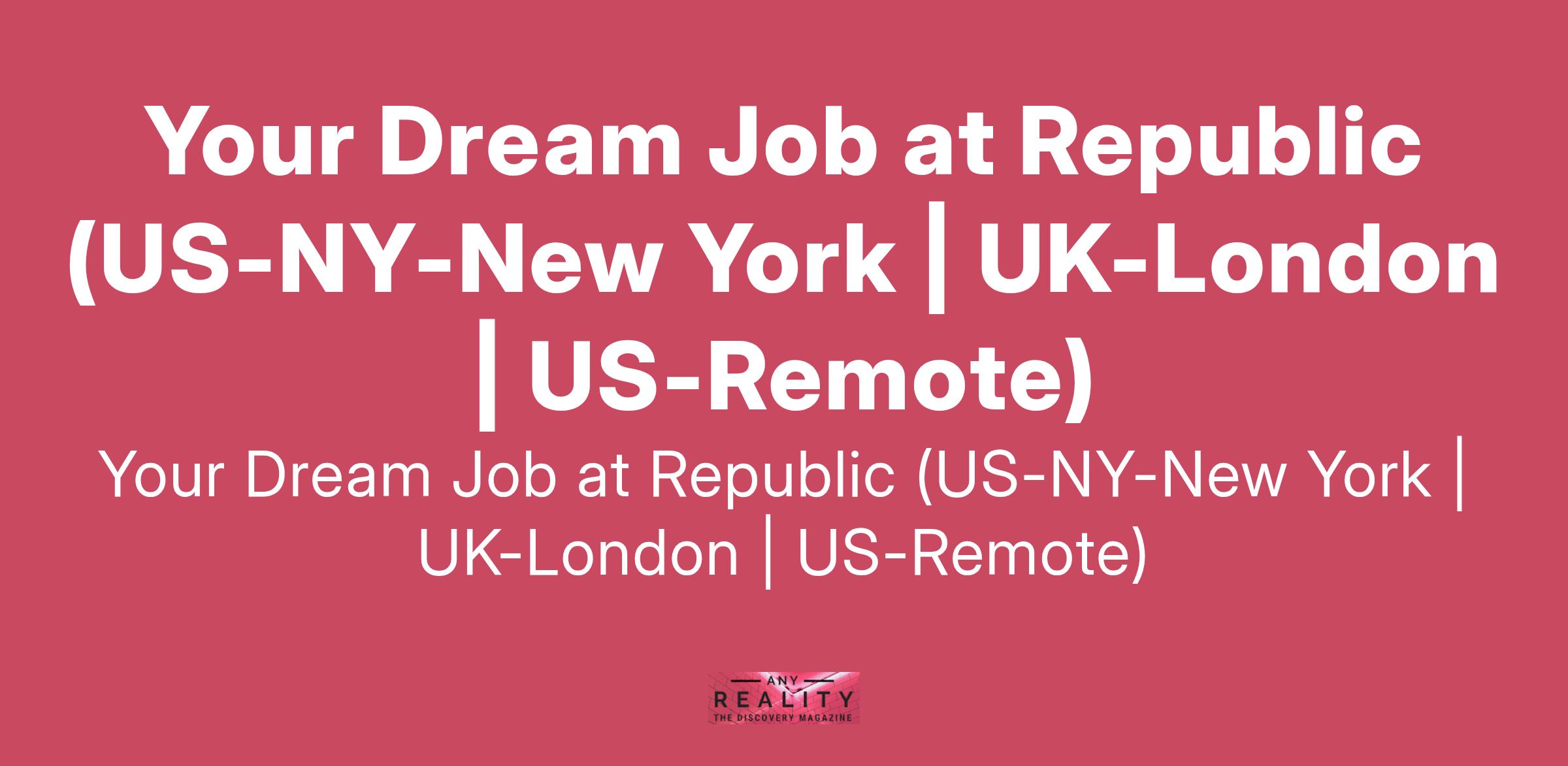 Your Dream Job at Republic (US-NY-New York | UK-London | US-Remote)