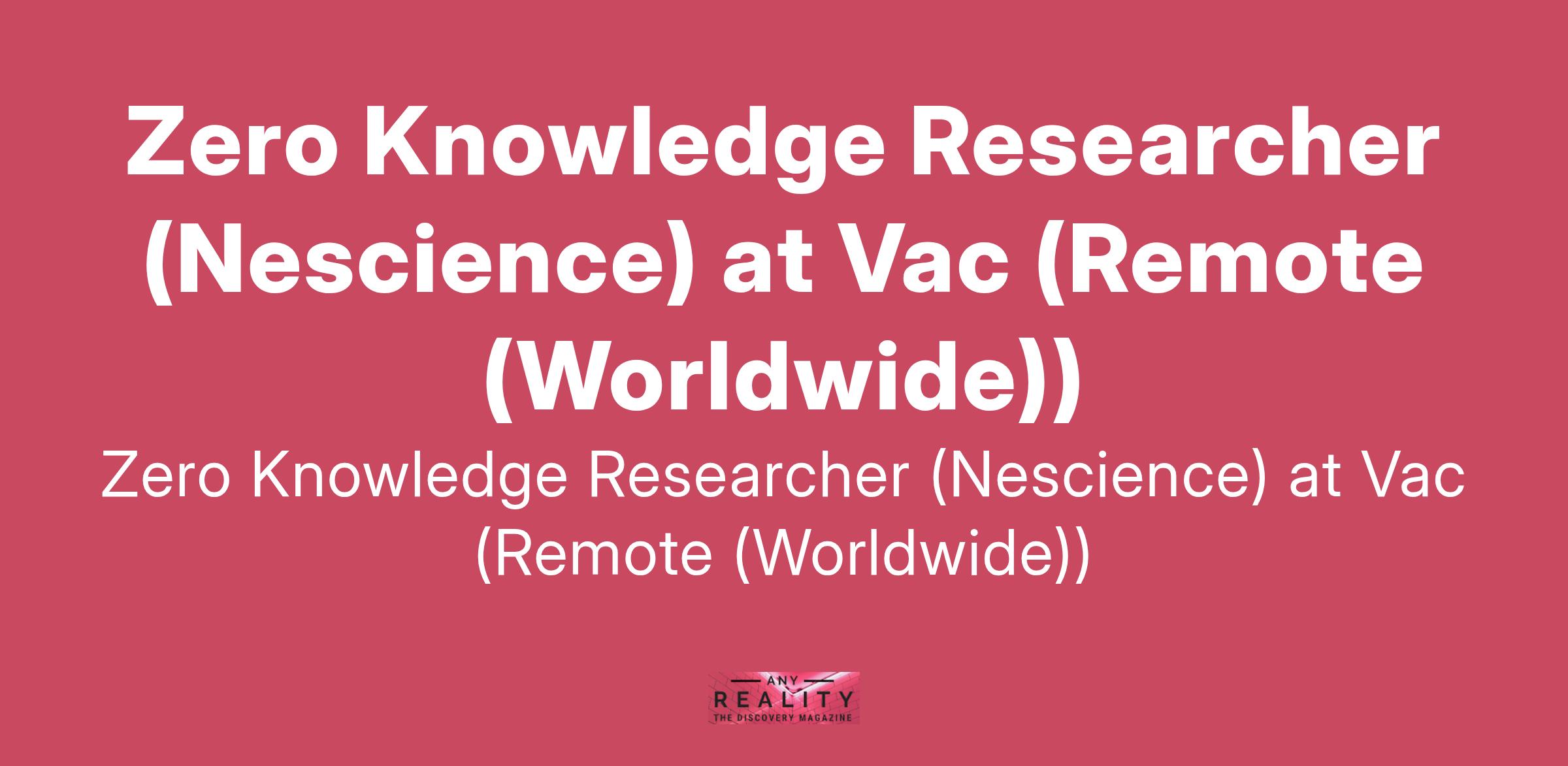 Zero Knowledge Researcher (Nescience) at Vac (Remote (Worldwide))